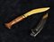 in ottone con manico in legno a forma di kukri completo di fondina in pelle