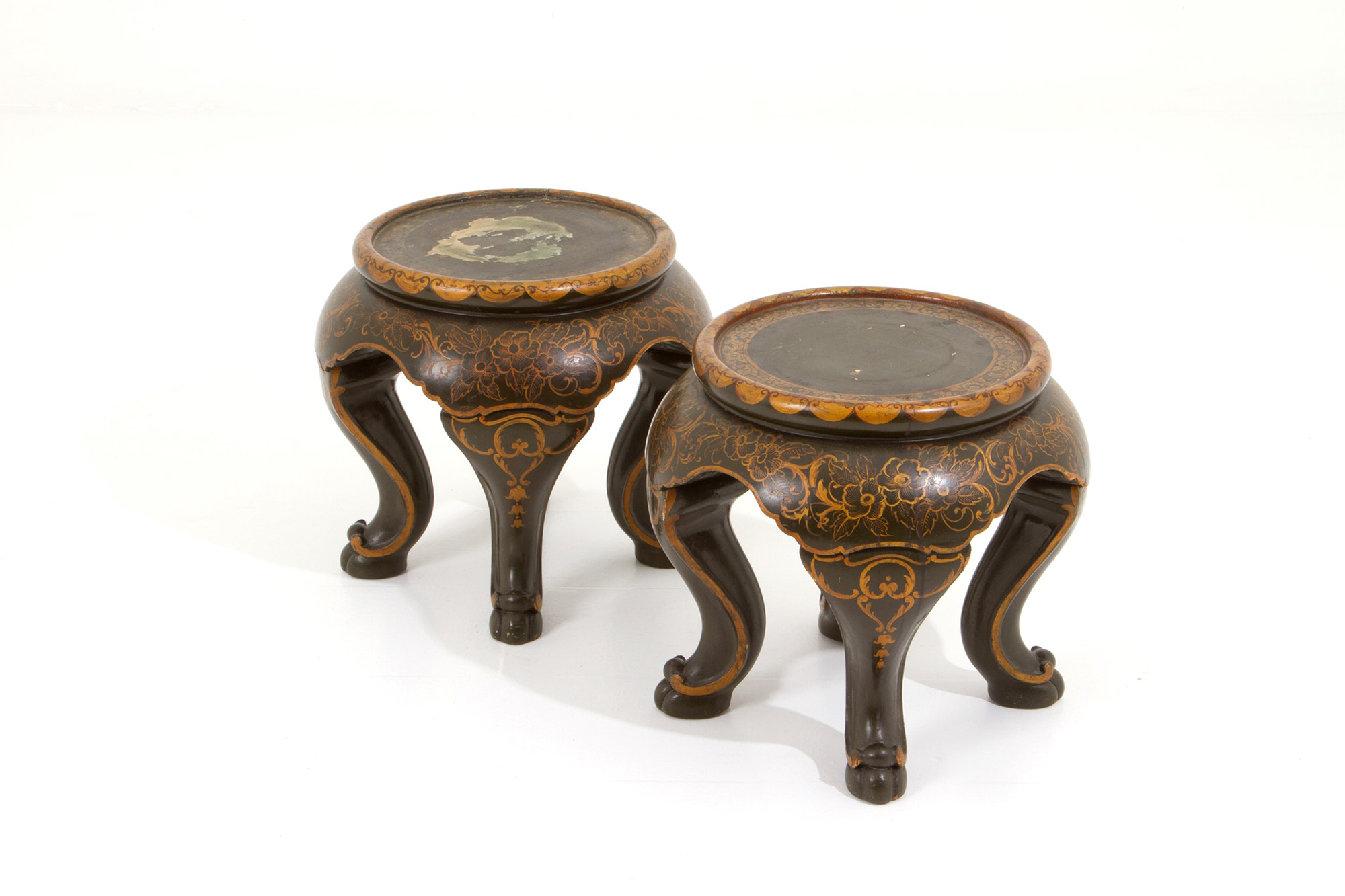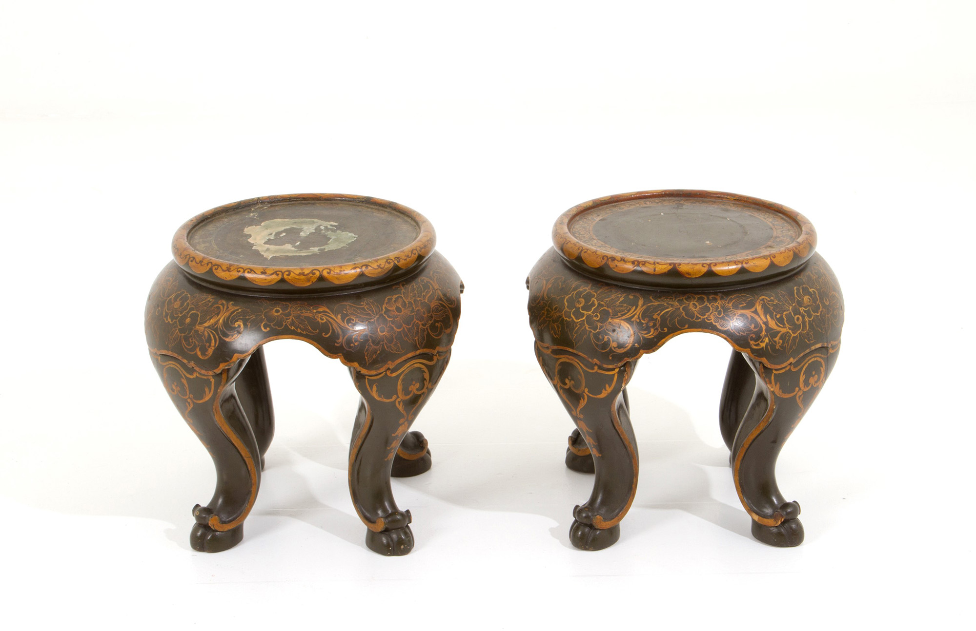 Pair of bases in lacquered and gilded wood. China. Late 19th century. Defects. 37x40cm approx. Coppia di basi in legno laccato e dorato. Cina. Fine XIX secolo. Difetti. 37x40 cm ca.