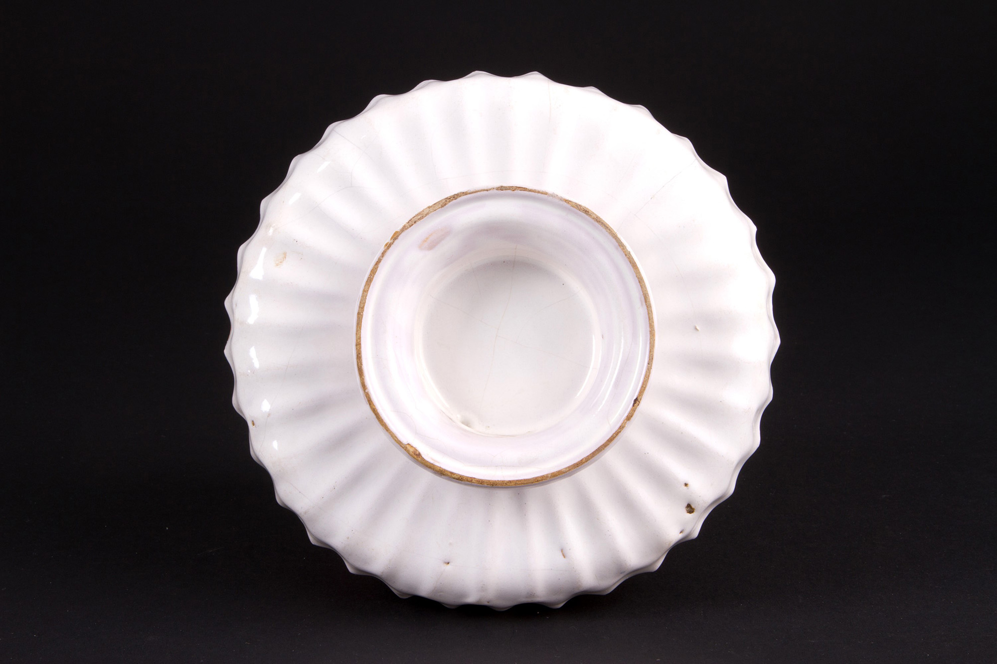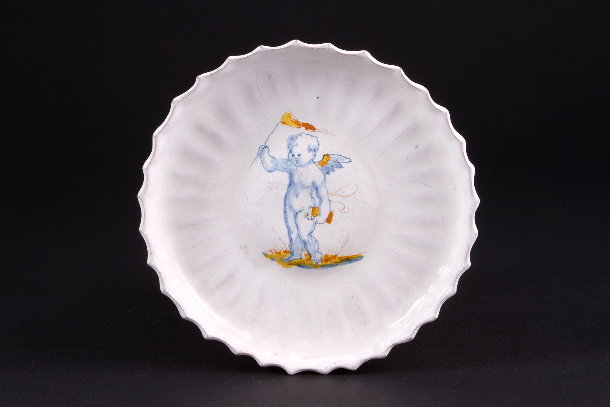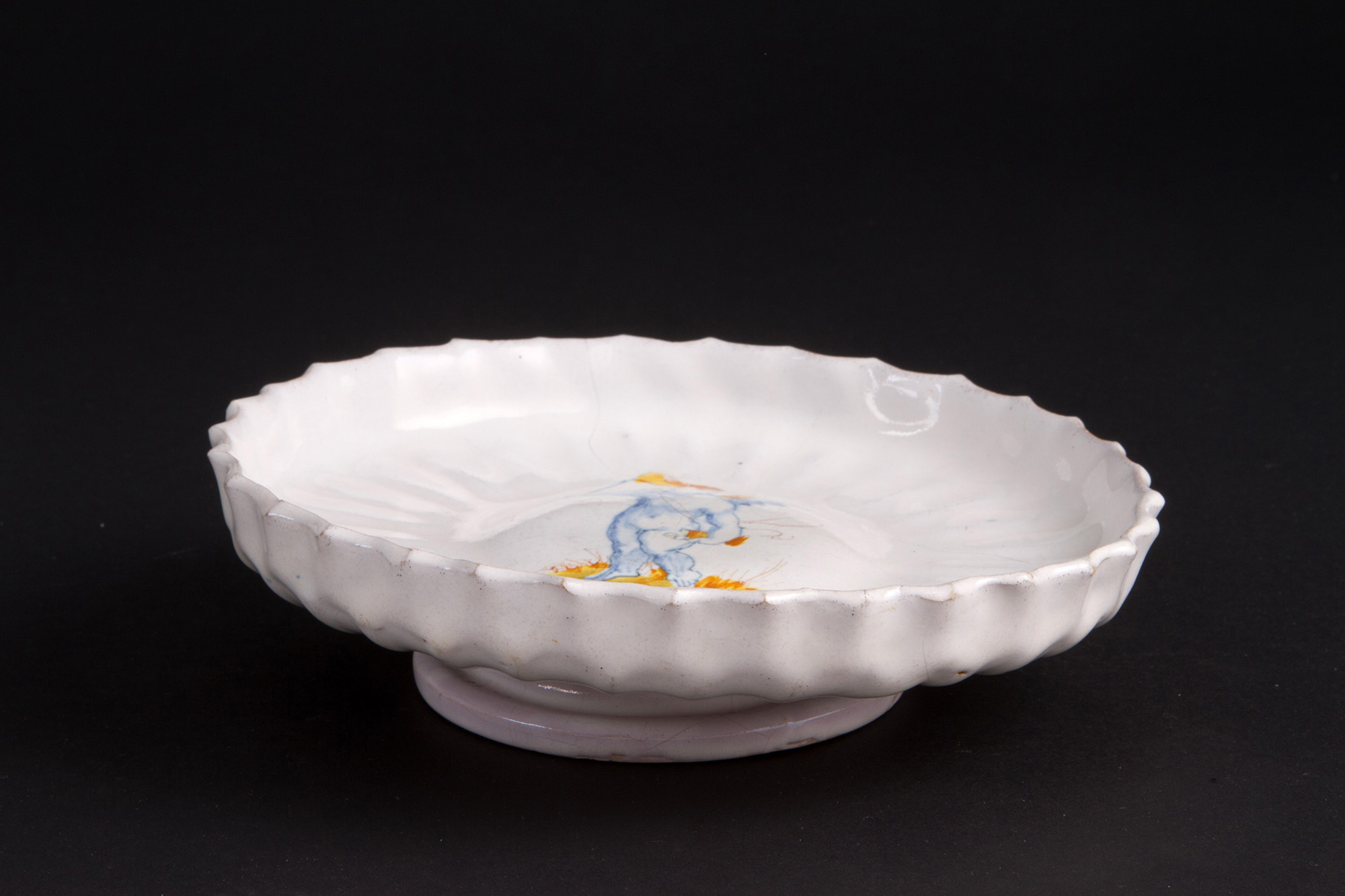 Crespina in majolica. Faience. Late 17th century. Felature. Diameter 19cm approx. Crespina in maiolica. Faenza. Fine XVII secolo. Felature. Diam. 19 cm ca.