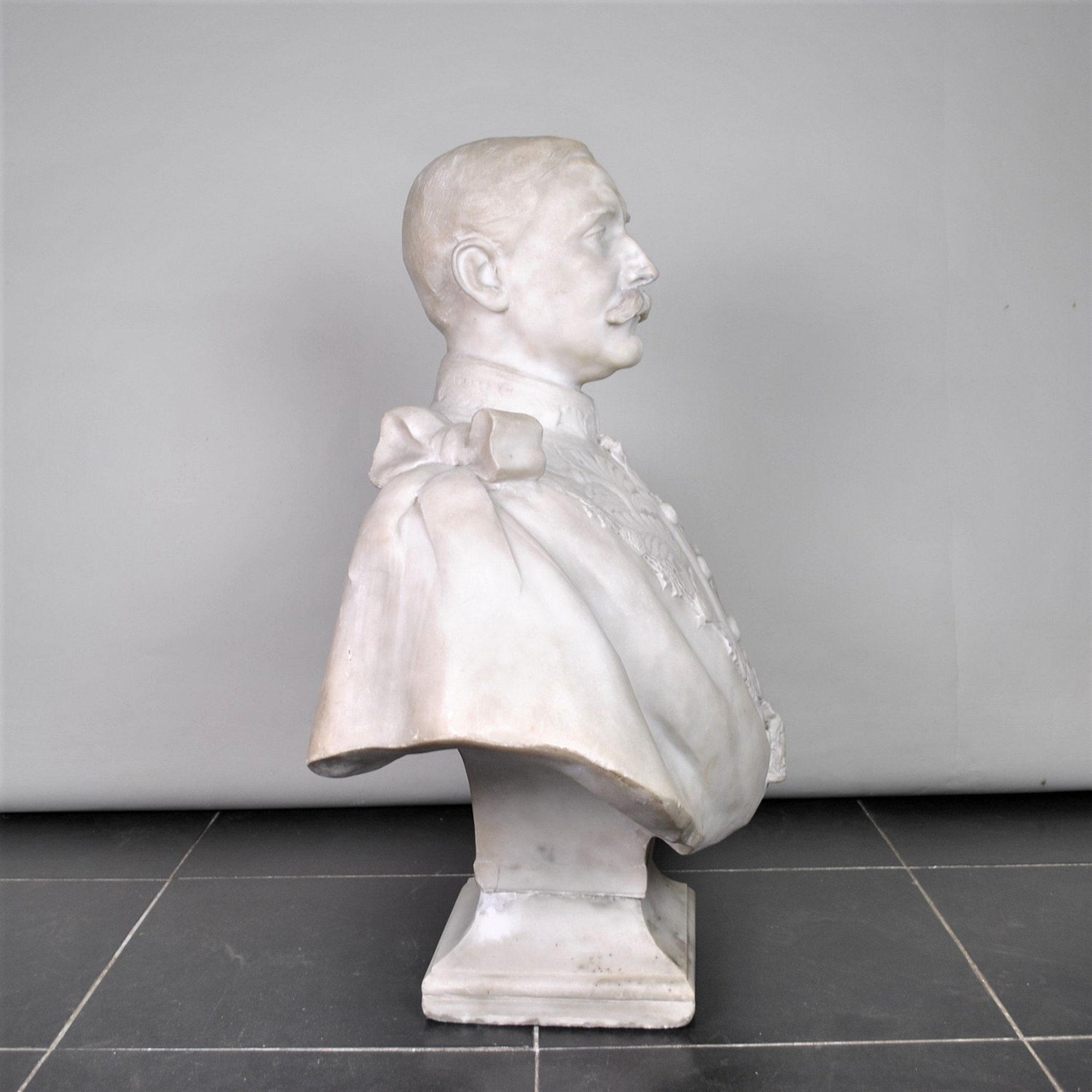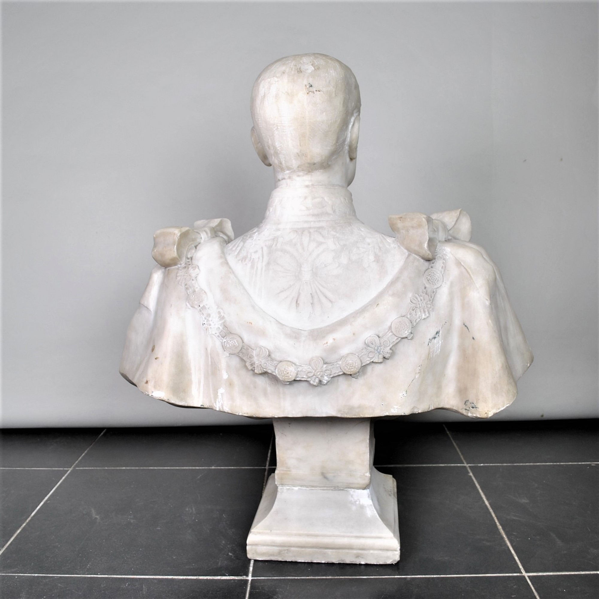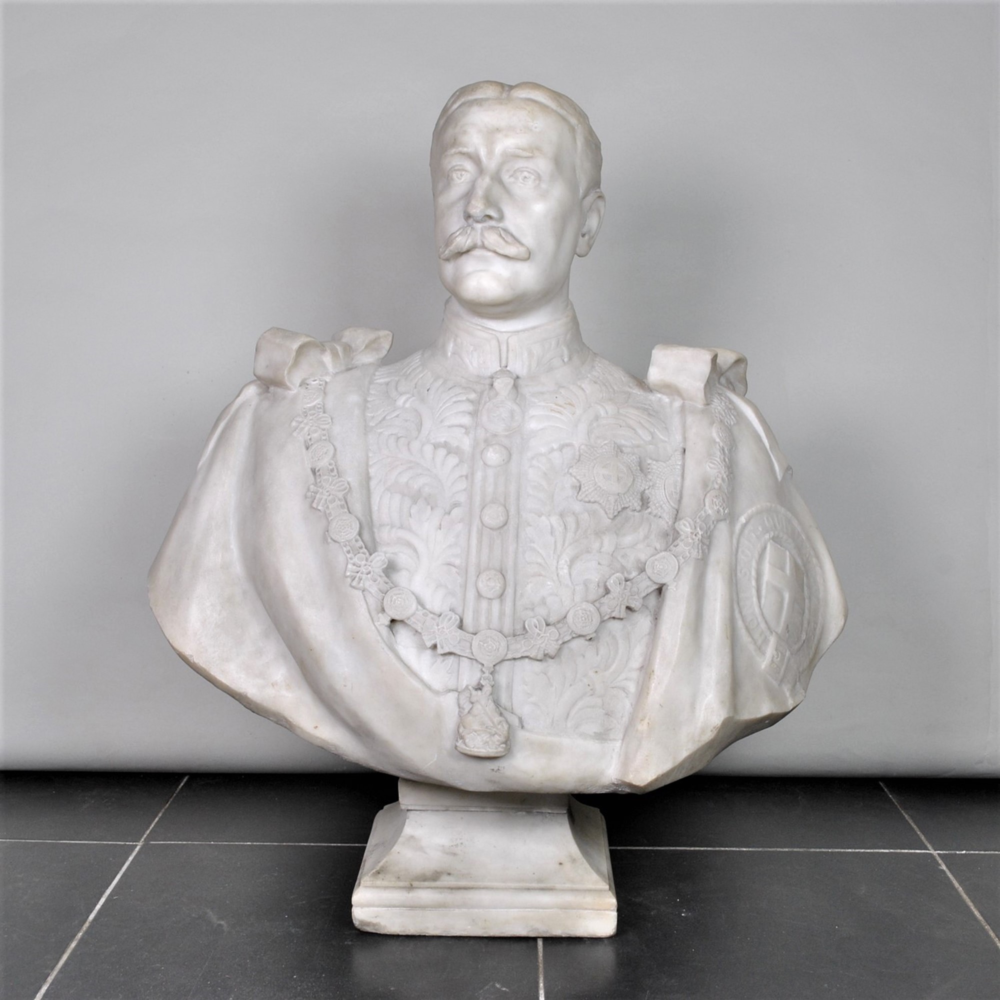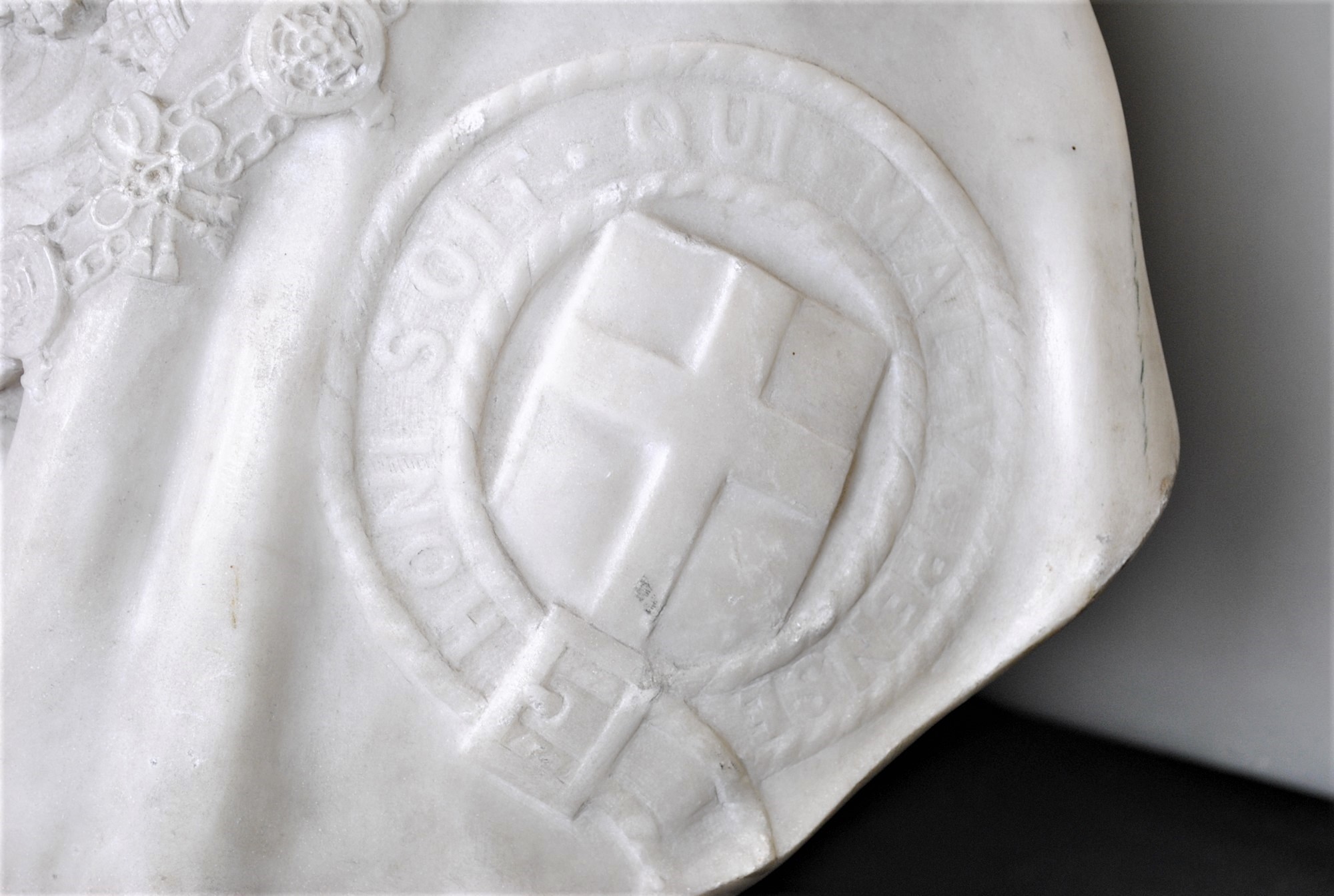 Marble sculpture depicting ''BUST OF A MEMBER OF THE ORDER OF THE GARTER''. 19th century. 90x80x40cm approx. Scultura in marmo raffigurante ''BUSTO DI UN MEMBRO DELL'ORDINE DELLA GIARRETTIERA''. XIX secolo. 90x80x40 cm ca.
