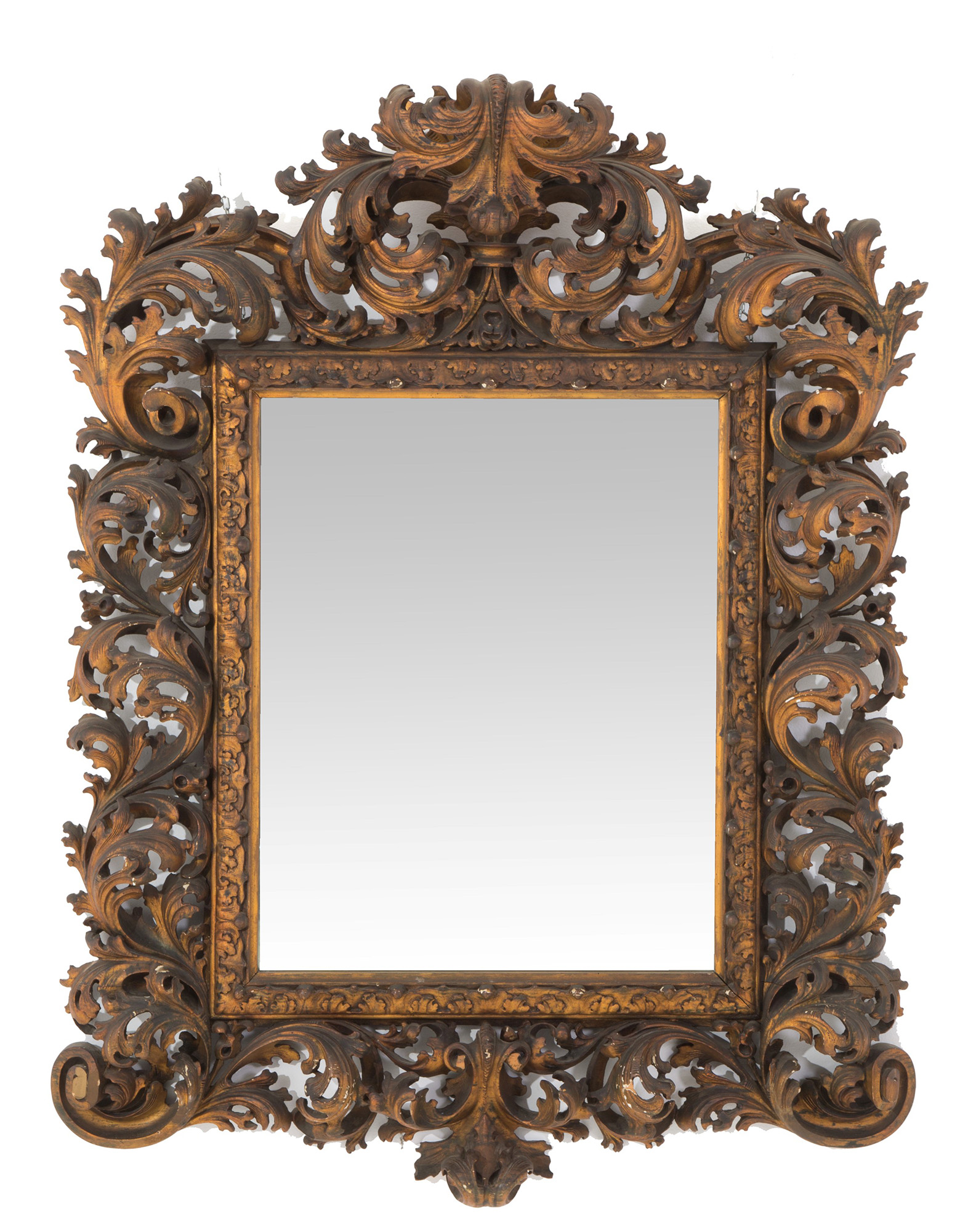 Baroque style mirror in carved and lacquered wood. Early 20th century. 150x117cm approx. Specchiera in stile barocco in legno intagliato e laccato. Inizi XX secolo. 150x117 cm ca.