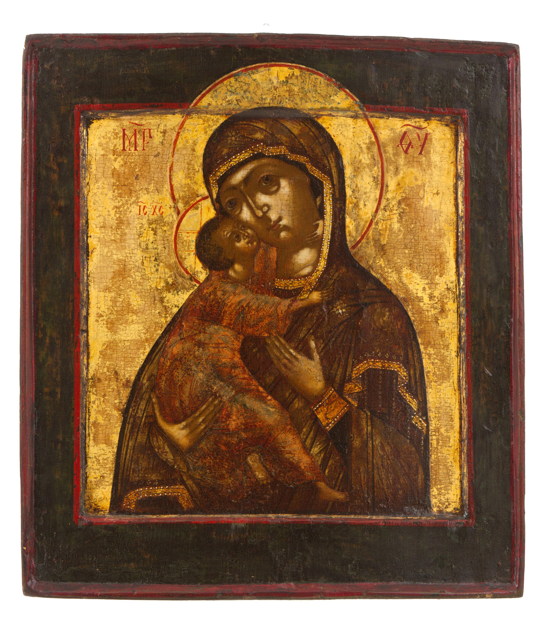 Icon depicting "MADONNA WITH CHILD". Early 19th century 30.5x27.5cm approx. Icona raffigurante "MADONNA CON BAMBINO". Inizi XIX secolo 30,5x27,5 cm ca.