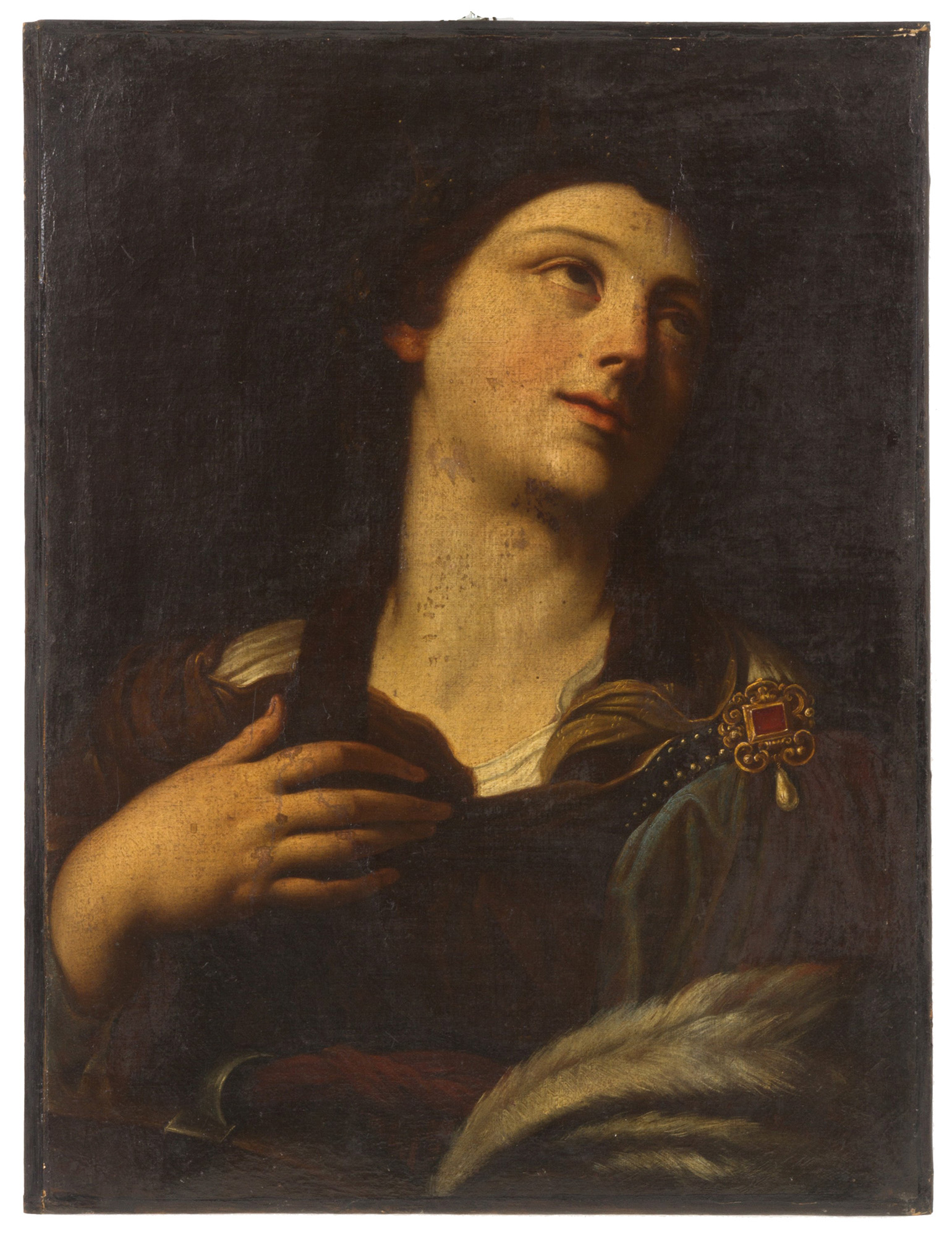 Oil painting on canvas depicting "SAINT". 17th century. Already relined and relined. 63.5x48.5cm approx. Dipinto olio su tela raffigurante "SANTA IN ESTASI". XVII secolo. Già rintelato e rintelaiato. 63,5x48,5 cm ca.