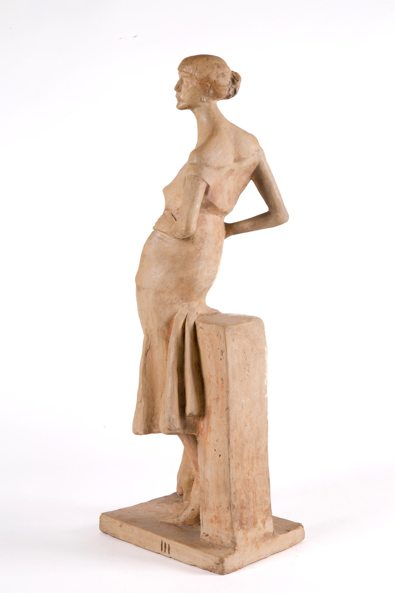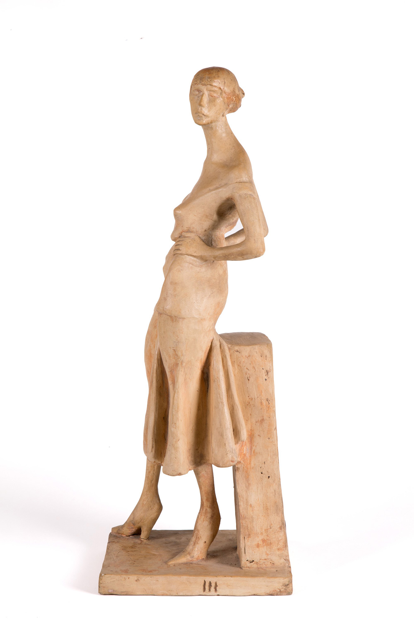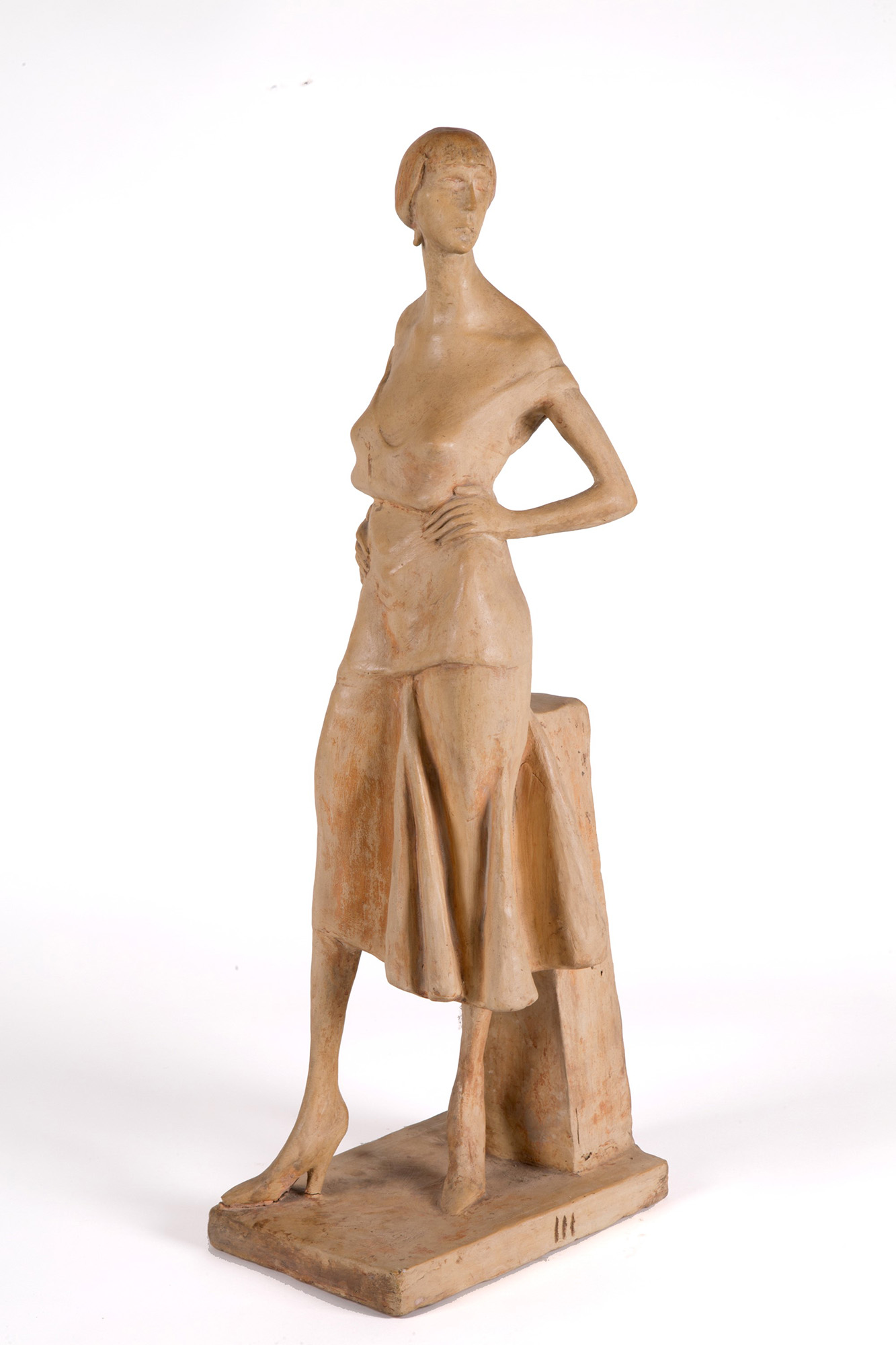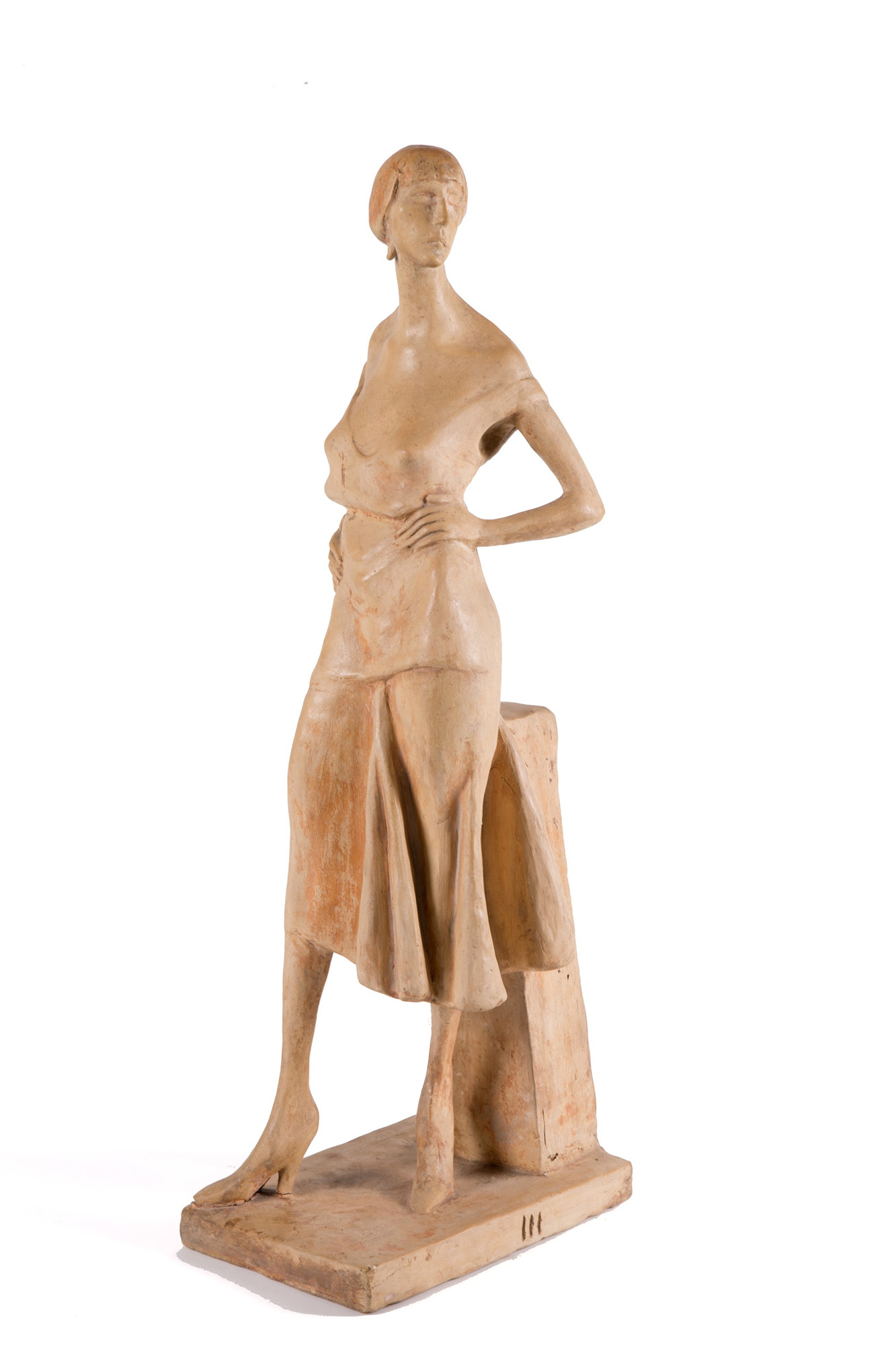 ENRICO MAZZOLANI (Attr.) (Senigallia 1876-Milano 1968). Terracotta sculpture depicting "FEMALE FIGURE". Slight flaw. 162x15x22cm approx. ENRICO MAZZOLANI (Attr.) (Senigallia 1876-Milano 1968). Scultura in terracotta raffigurante "FIGURA FEMMINILE". Lieve difetto. 162x15x22 cm ca.