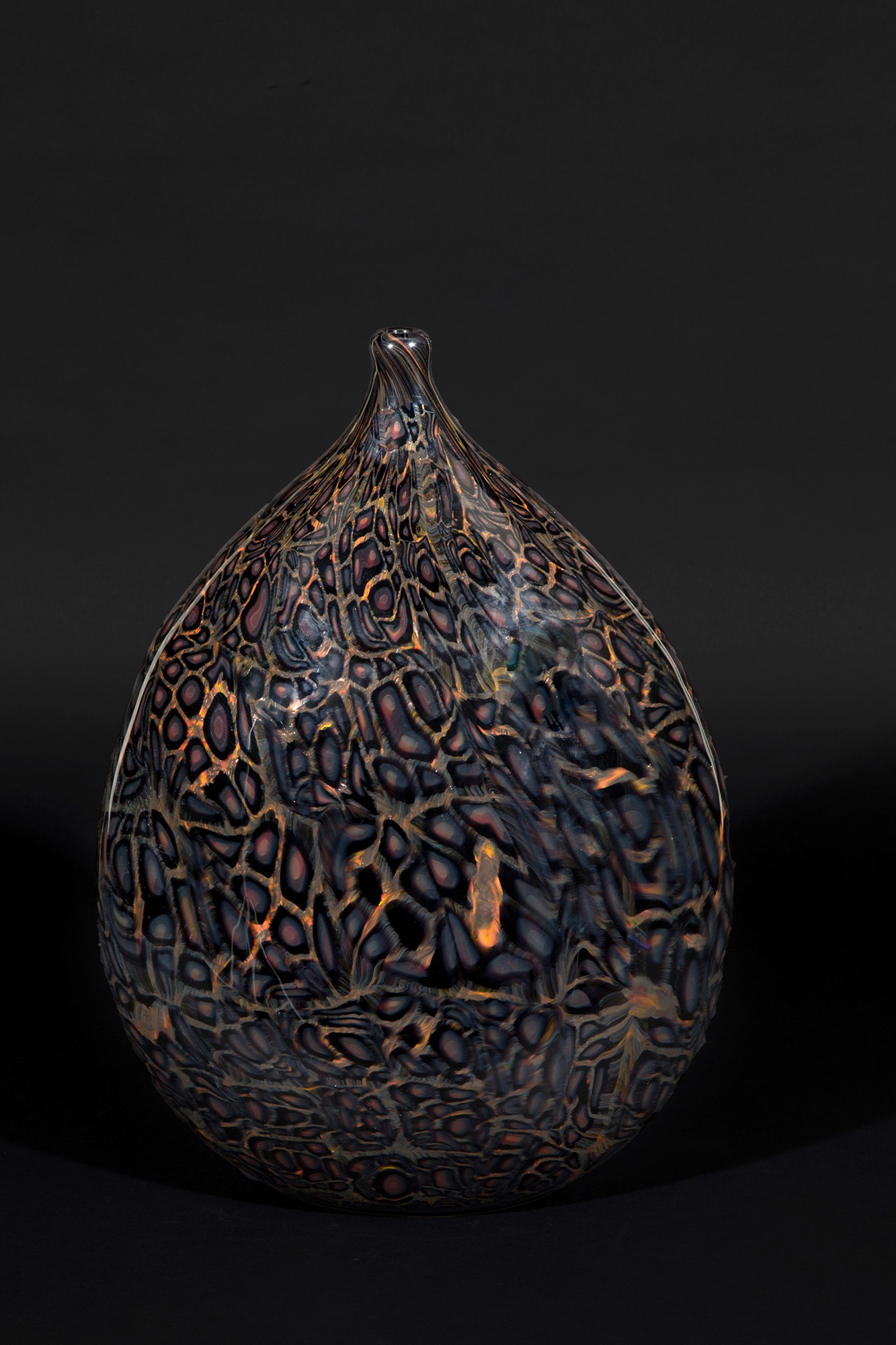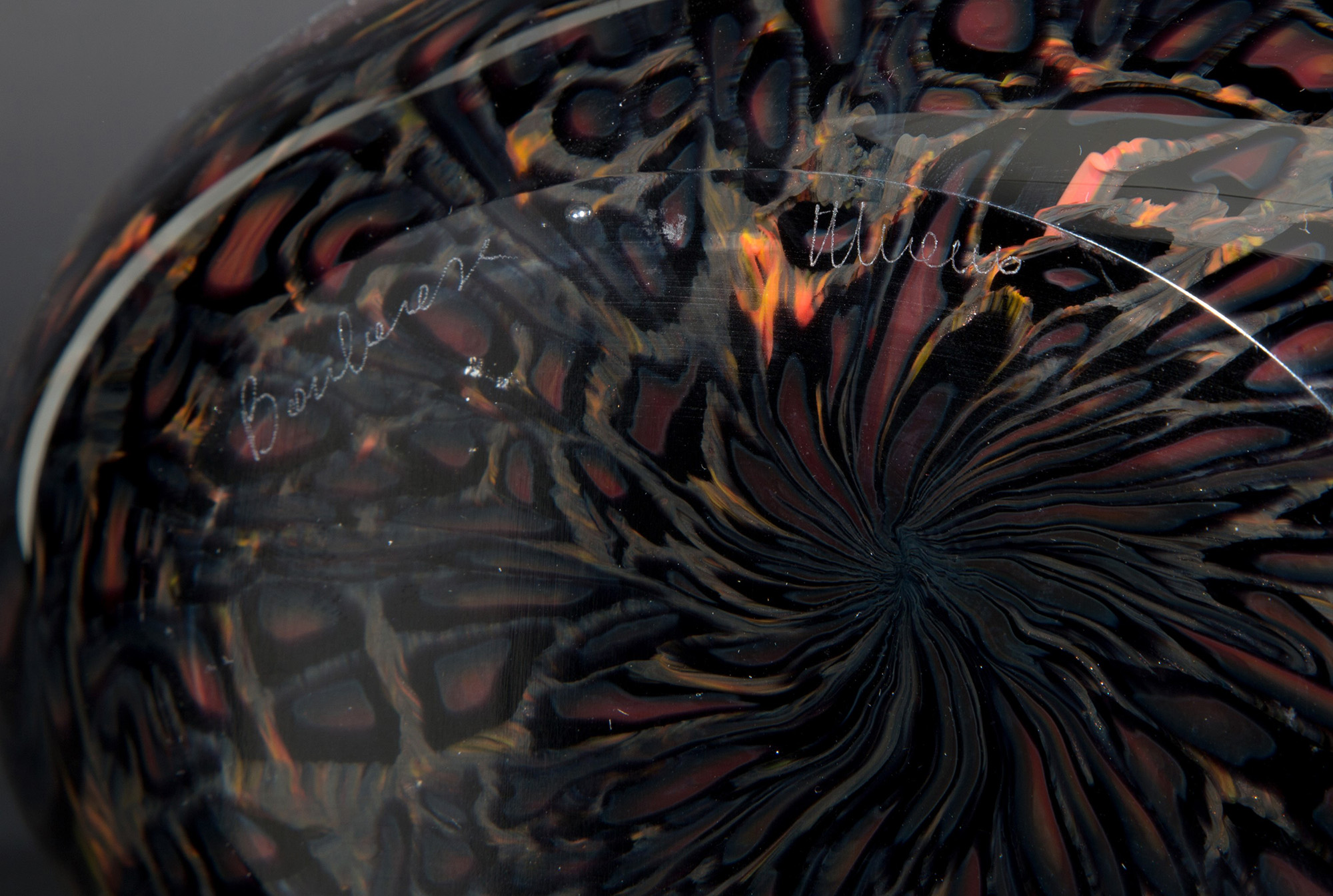 Speckled glass vase. Signed BORBONESE, Murano on the bottom. 44x34x17cm approx. Vaso in vetro maculato. Firmato BORBONESE, Murano sul fondo. 44x34x17 cm ca.