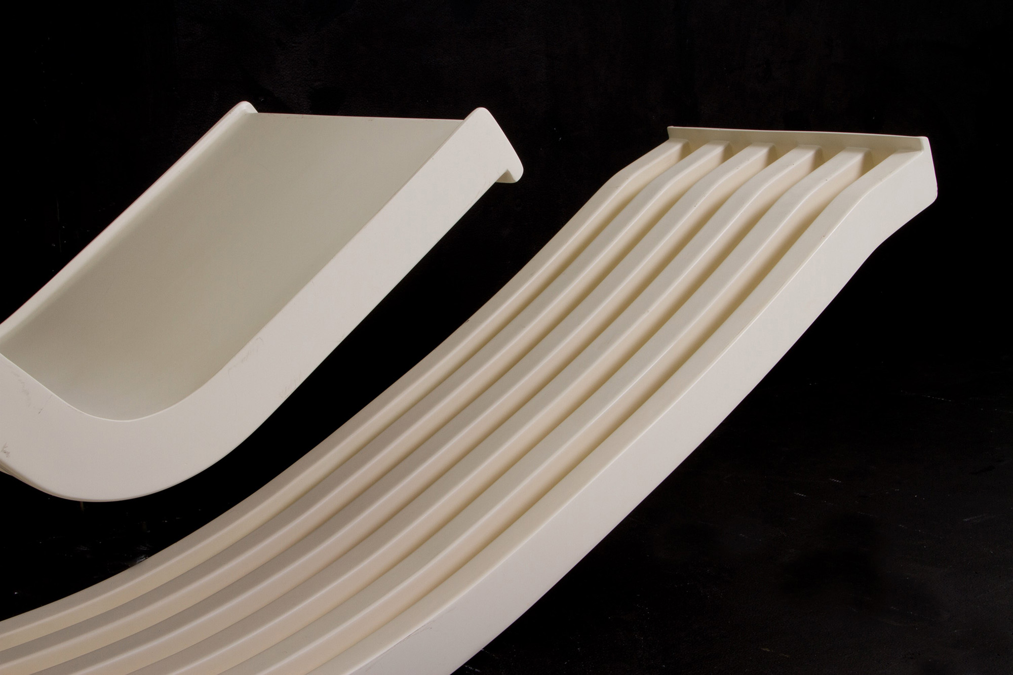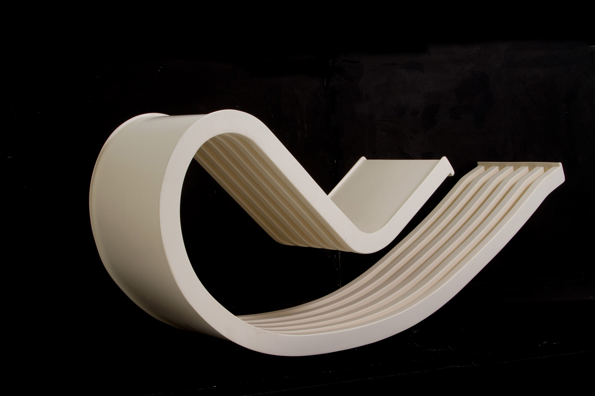 CESARE LEONARDI - FRANCA STAGI (Modena 1935-2021, Modena 1937-2008). Fiberglass rocking chair. ELCO production. With manufacturer's label. 1970s. Presented at the 1969 Milan Furniture Fair. Exhibited at the MoMA in New York. 74x40x174.5cm approx. CESARE LEONARDI - FRANCA STAGI (Modena 1935-2021, Modena 1937-2008). Dondolo in vetroresina. Produzione ELCO. Con etichetta del produttore. Anni '70. Presentato alla Fiera del Mobile di Milano del 1969. Esposto al MoMA di New York. 74x40x174,5 cm ca.