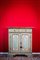 Piccola credenza in legno intagliato e laccato nei toni del celeste e dell'avorio