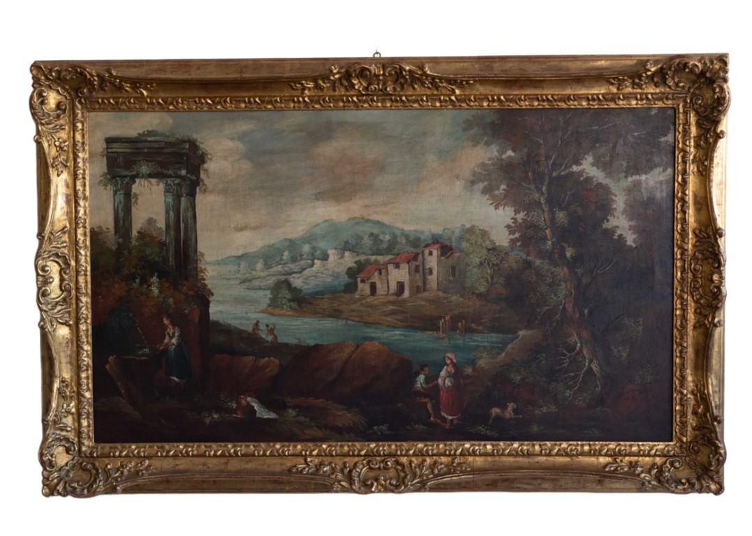 Paesaggio arcadico con figure e rovine