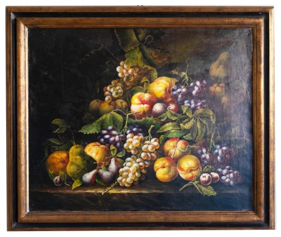 Lotto 75 | Natura morta con frutta metà sec. XX olio su tela cm 49x59, entro cornice