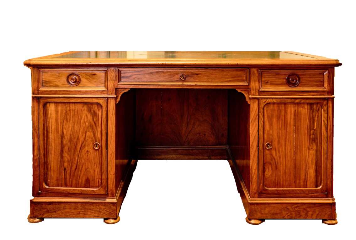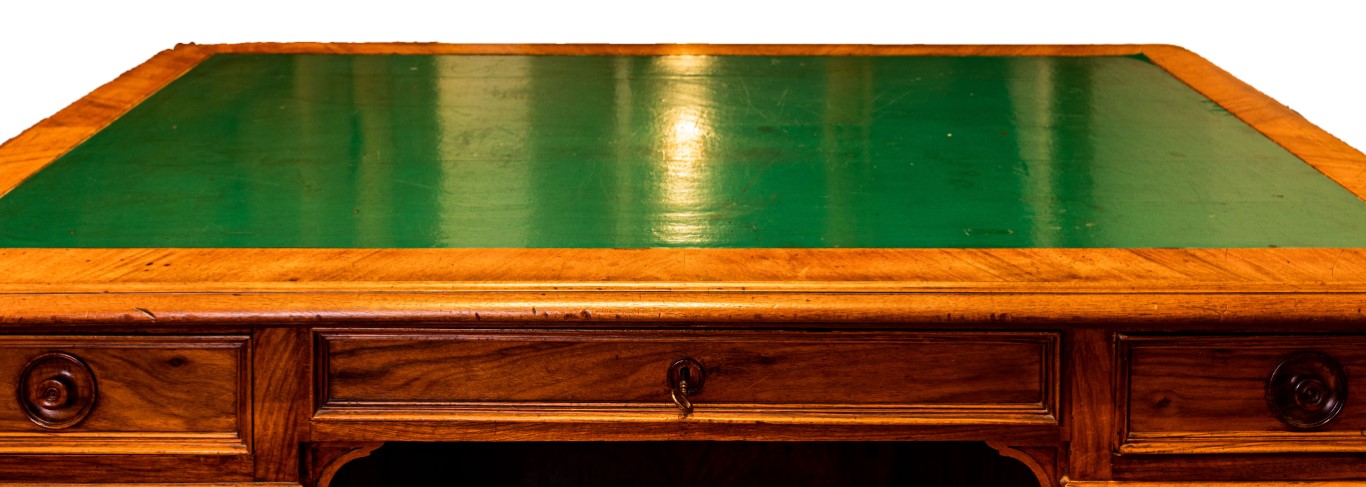 piano in marocchino verde, tre cassetti e due sportelli sottostanti