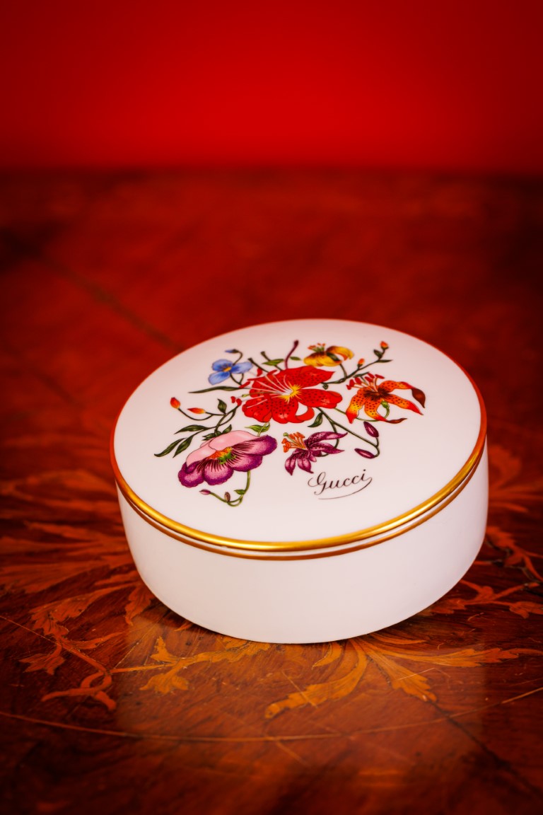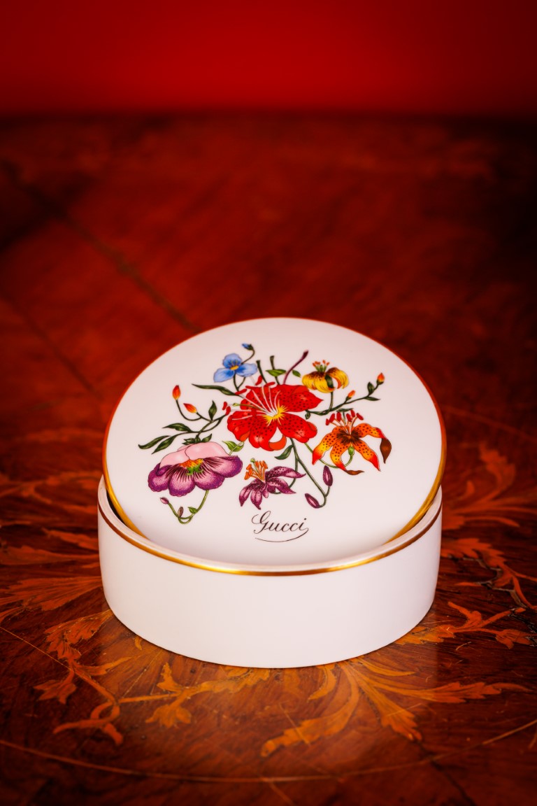 Scatola porta bon bon in porcellana policroma Richard Ginori per Gucci