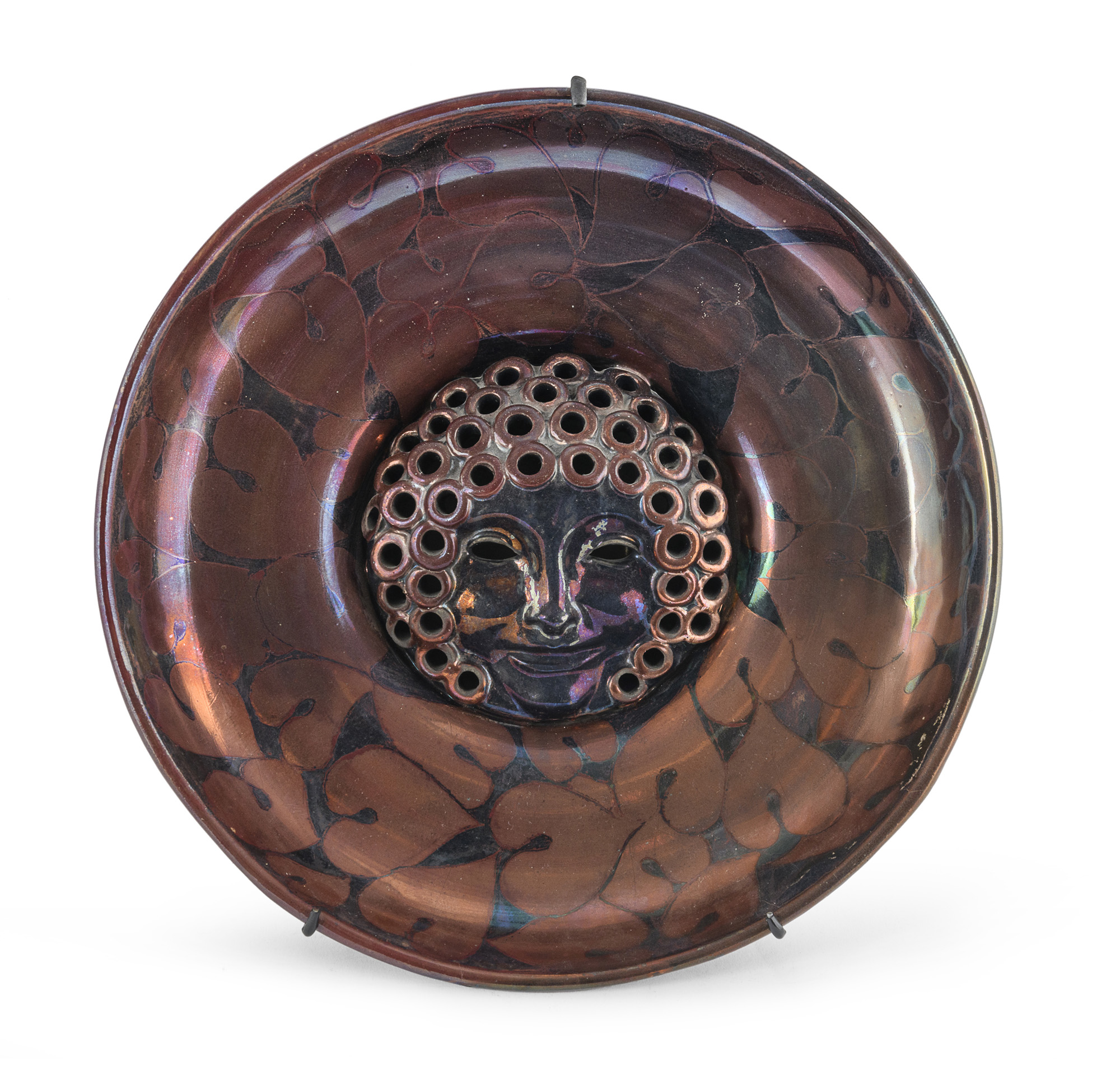 Terracotta dipinta e invetriata a lustro, diametro cm. 31