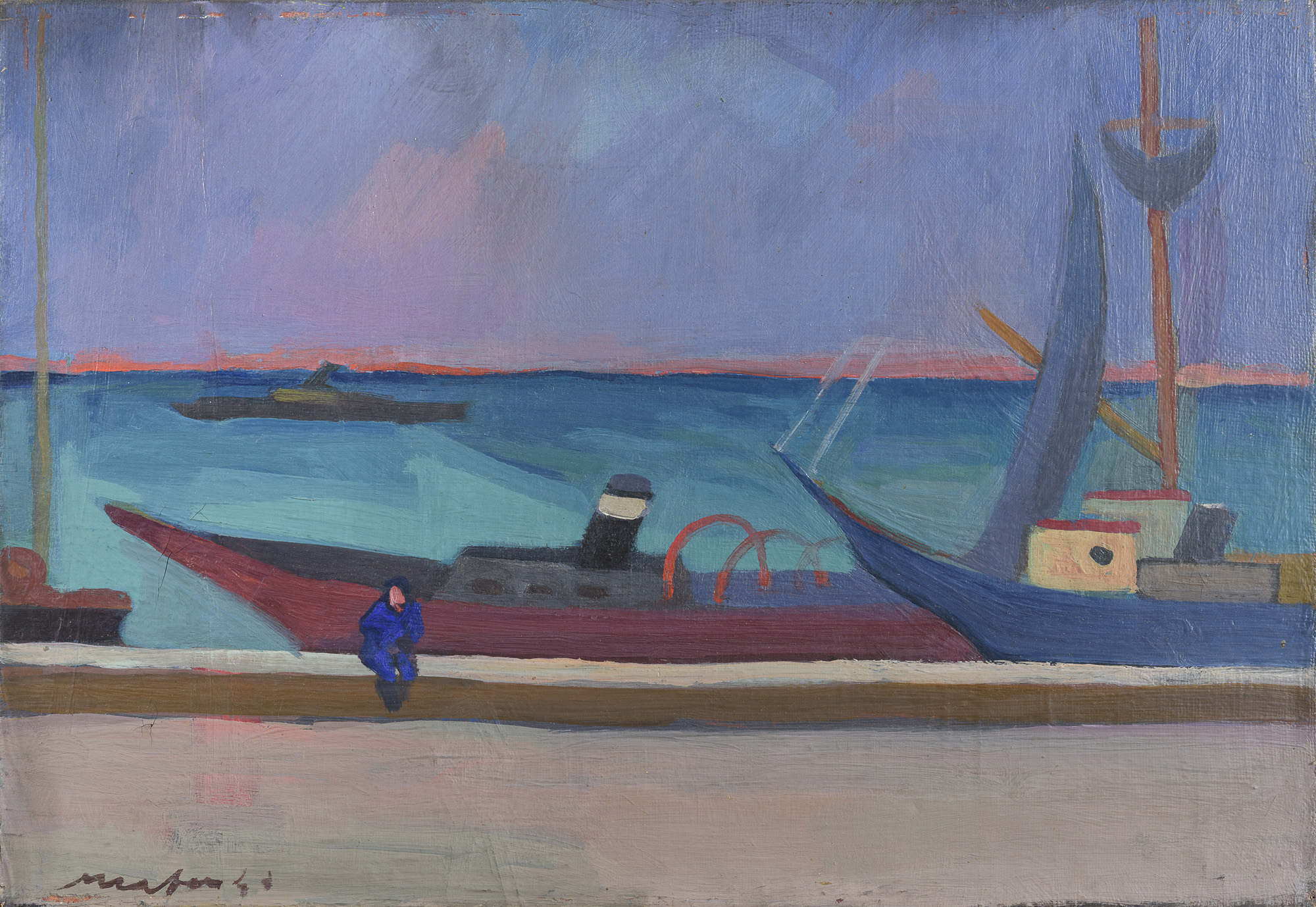 DIPINTO BARCHE AL PORTO DI MARIO MAFAI