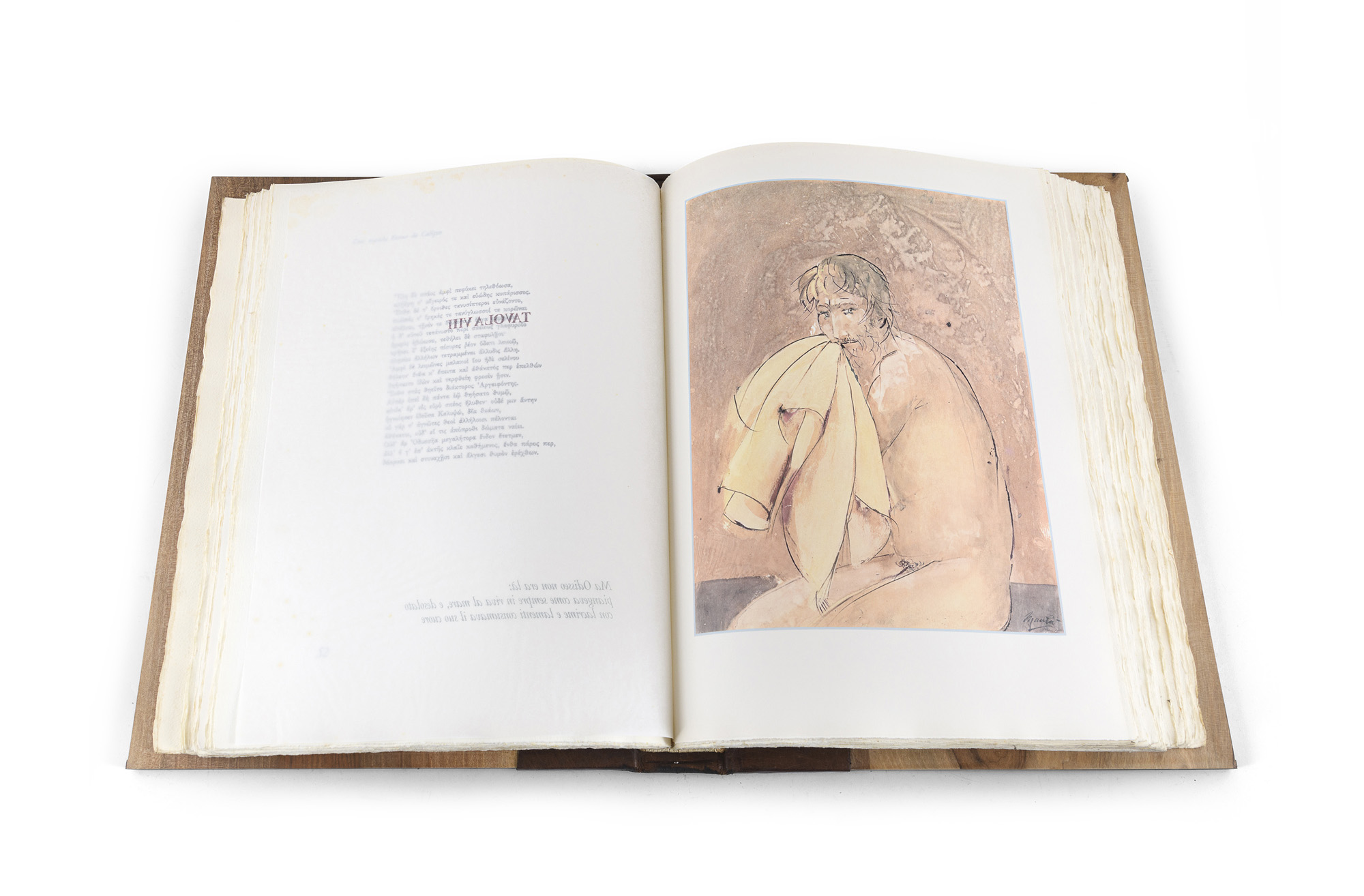 episodi scelti e tradotti da Salvatore Quasimodo, illustrati da venti tavole di Giacomo Manzù. Delfino Edizioni d'Arte Roma. Mezza pelle con cofanetto in legno.