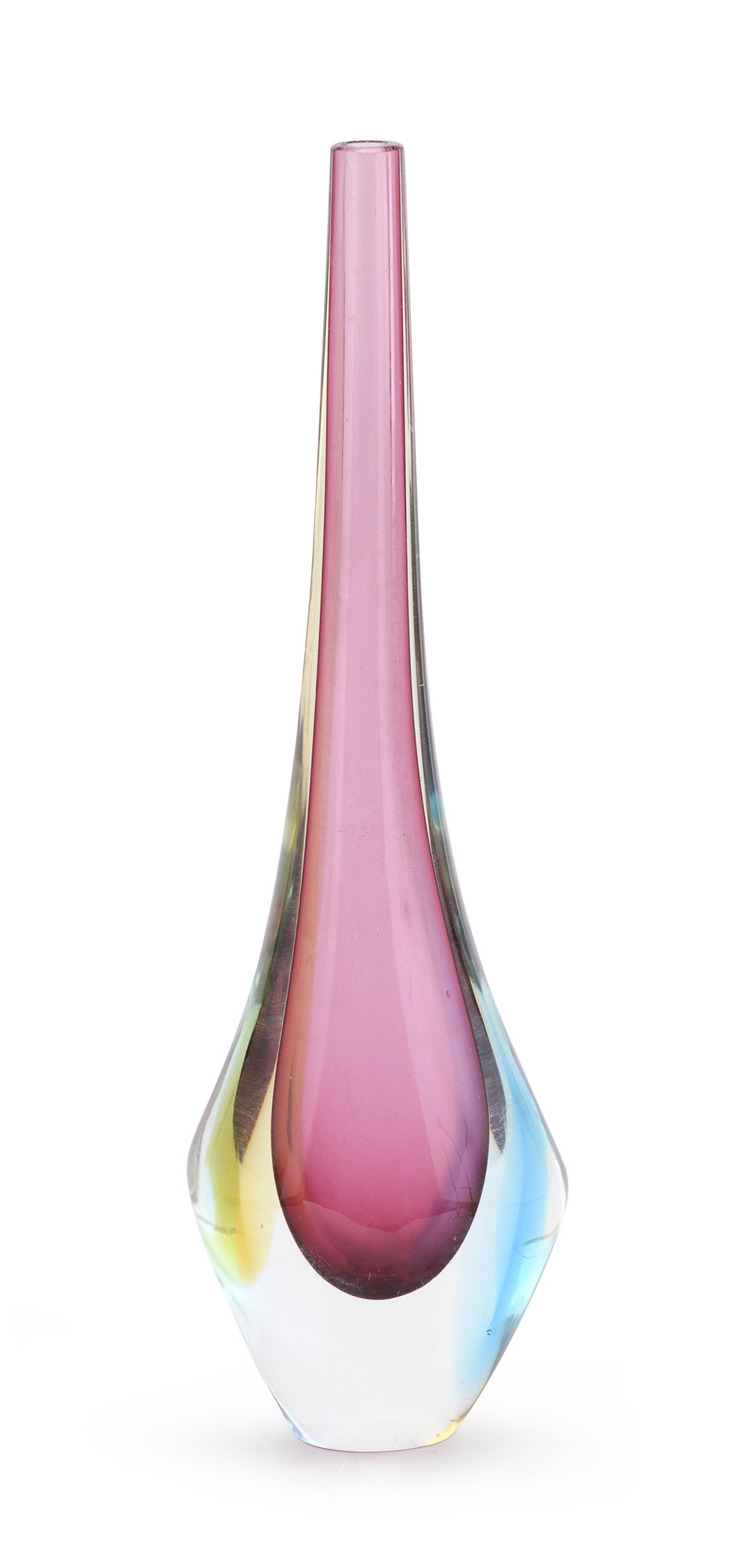 in vetro sommerso nei colori del fucsia, del blu e del giallo.