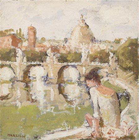 DIPINTO LUNGOTEVERE DI FRANCO MARZILLI