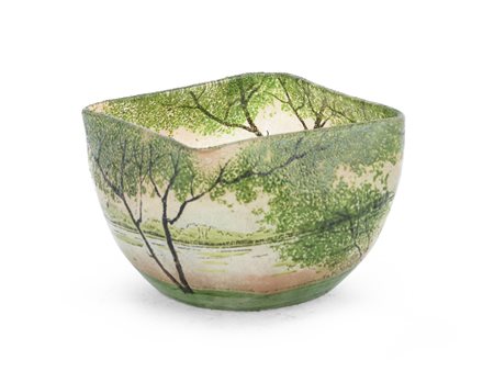 in pasta di vetro, decorato a paesaggio.