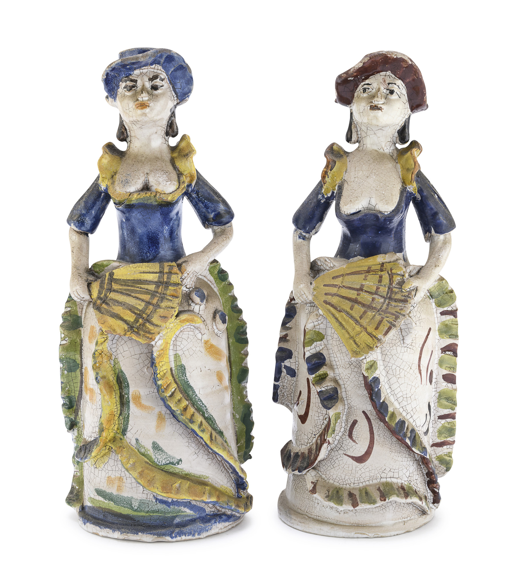 in policromia, sagomate a figure di damigelle con gonne tipiche.