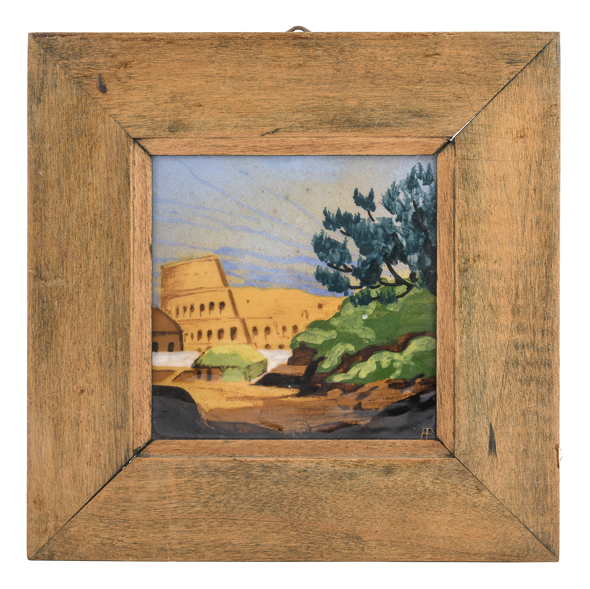 in ceramica policroma smaltata, raffigurante veduta del Colosseo.