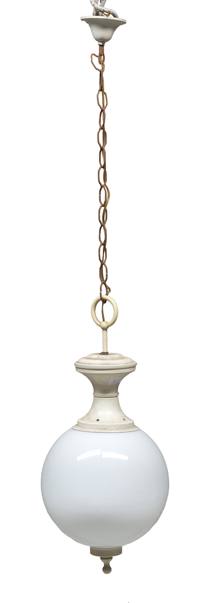 con bobeche in opaline bianco-latte e supporto in metallo a lacca bianca.