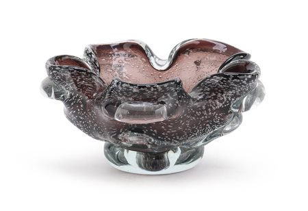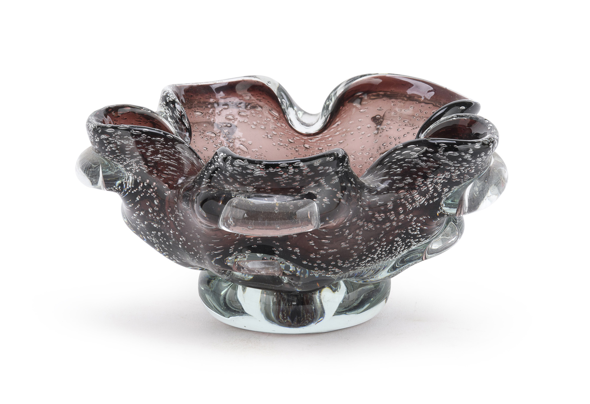 a fondo ambra con inclusioni a bolle, con sagoma a fiore.