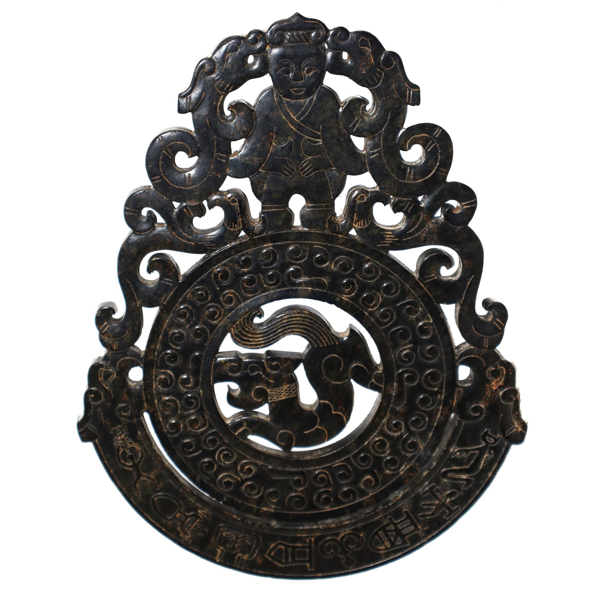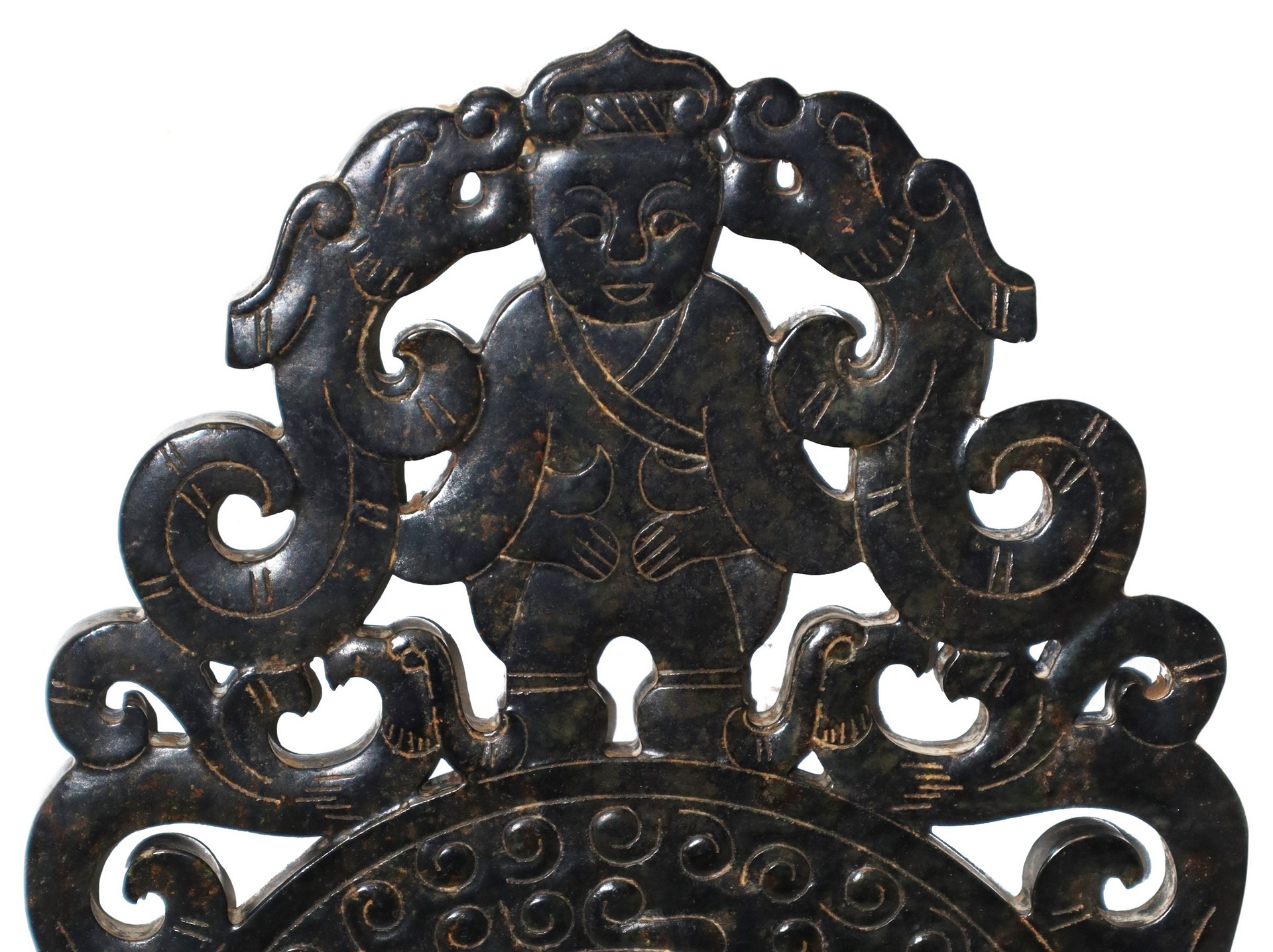 Giada Blu, Qing dynasty H cm 24 x L cm 18.5 Scolpita con figure e fiori Scolpita con figure e fiori