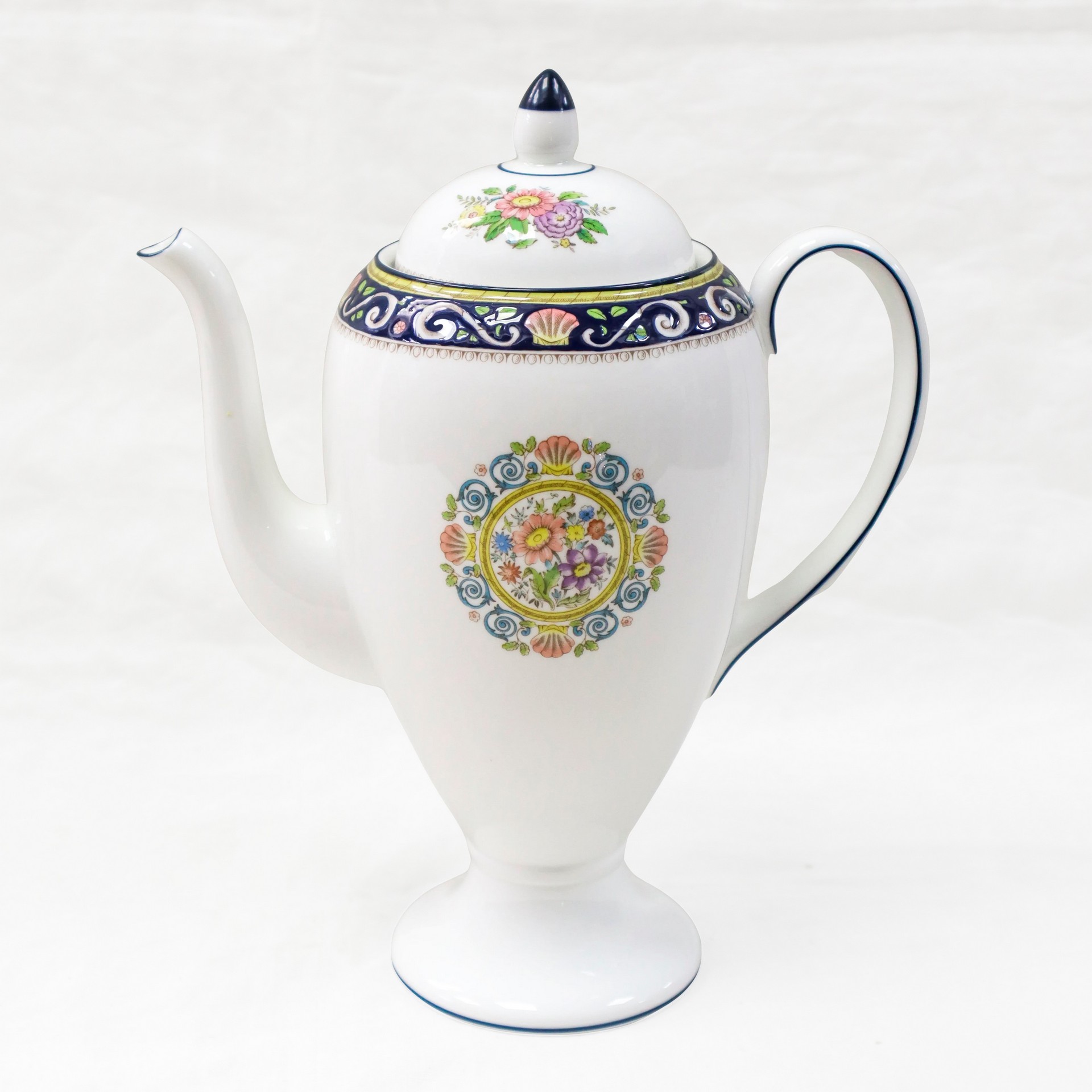Wedgwood Made in England - Servizio da te e caffe in porcellana, mod. "Runnymede", 1972 Composto da n.12 tazze da te con piattino, n. 11 tazzine da caffè con piattino, lattiera, teiera, caffettiera e zuccheriera.Composto da n.12 tazze da te con piattino, n. 11 tazzine da caffè con piattino, lattiera, teiera, caffettiera e zuccheriera.