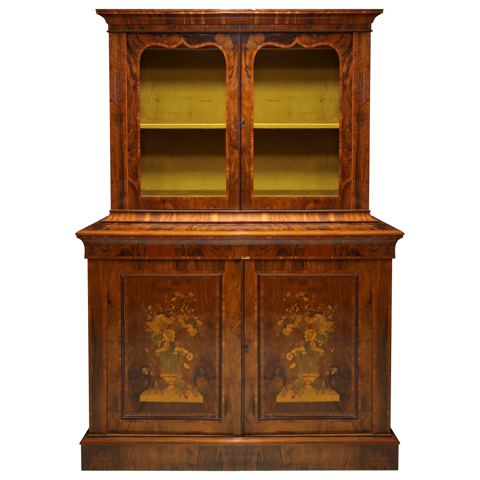 Mobile vetrina a due corpi, XVIII secolo h cm 205 x 140 x 55 Base con sportelli in legno intarsiato con motivo floreale. Base con sportelli in legno intarsiato con motivo floreale.