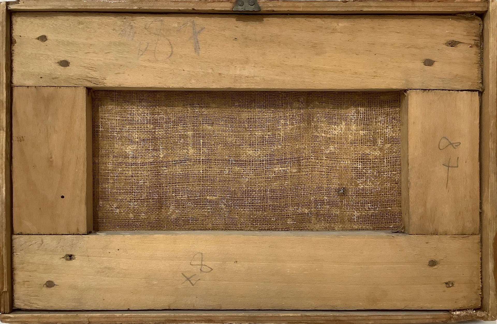 Giuseppe Zais (ambito di) (Forno di Canale 22/03/1709-Treviso 29/12/1781) - Paesaggio con case, barche e personaggi, XVIII secolo cm 19,5 x 29,5 Olio su tela