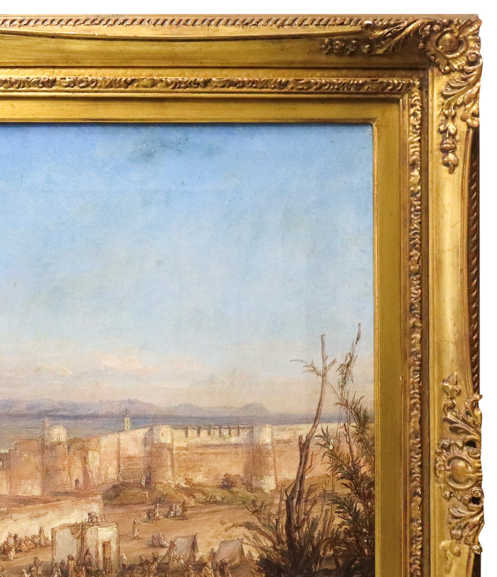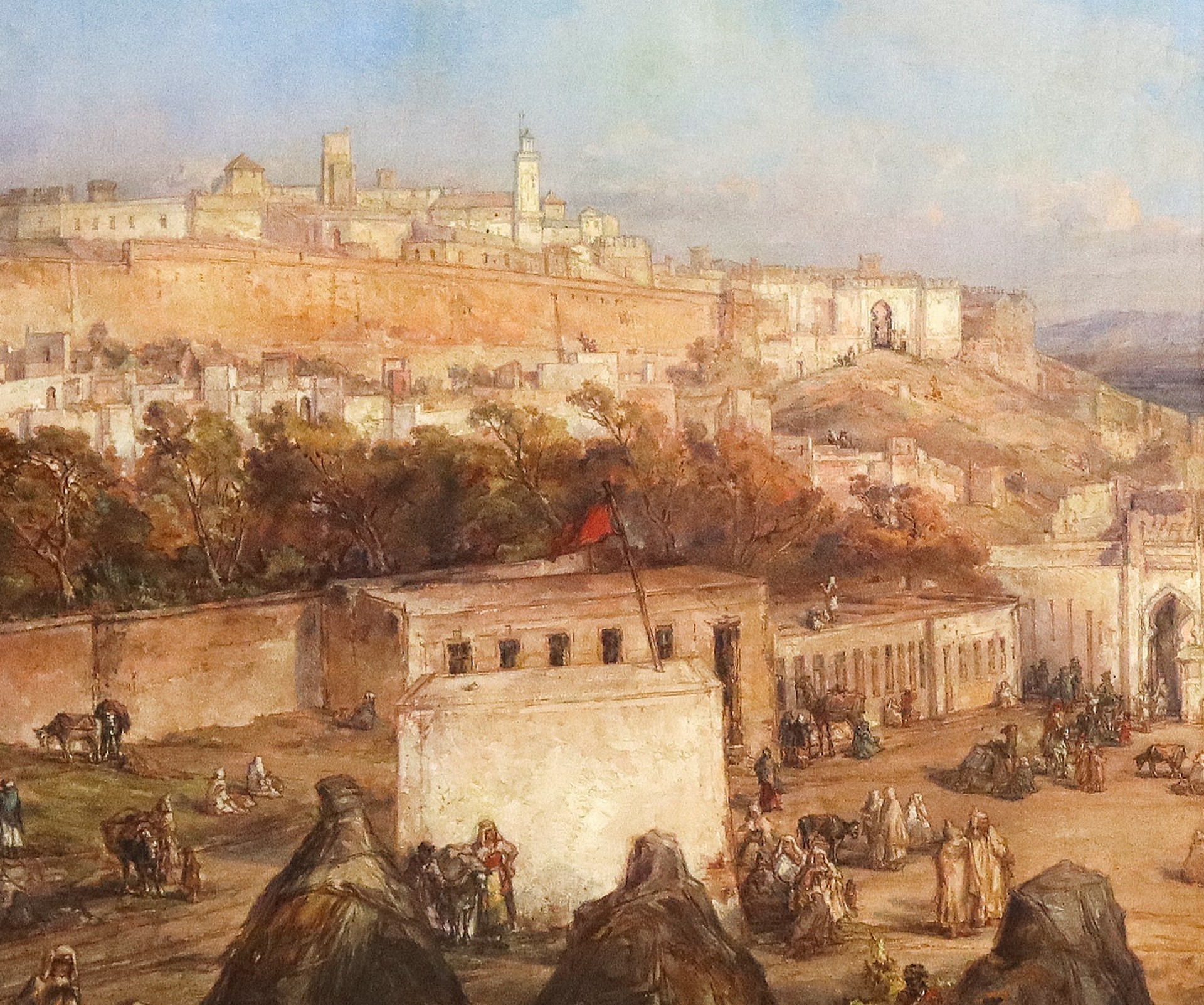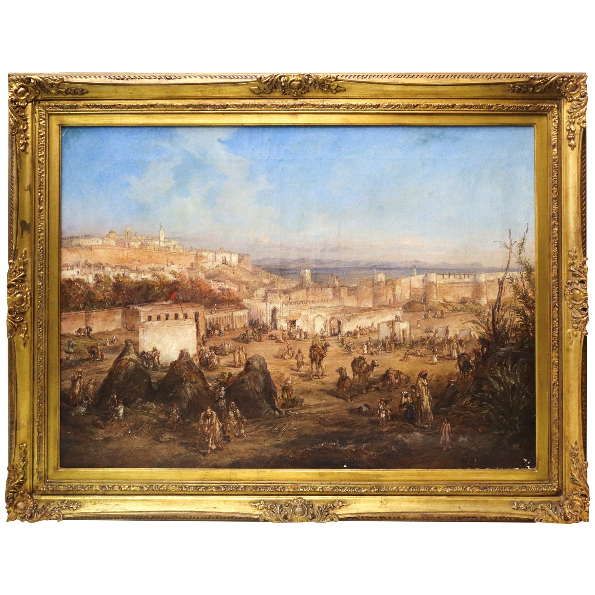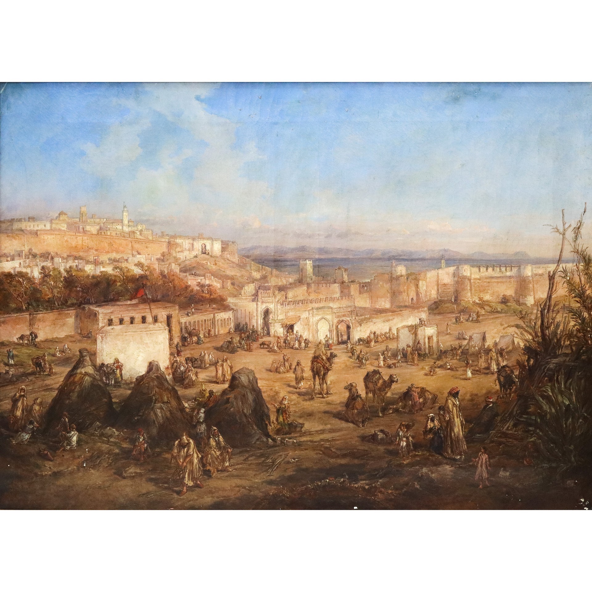 Louis Désirée Thienon (1812-1884) - Ripresa a volo d'uccello della città di Tangeri, Orientalist painter H84 x 117 L cm, in cornice H 108 x 141 cm Olio su tela Firmato "Louis Thienon" e datato 1867 in basso a sinistra