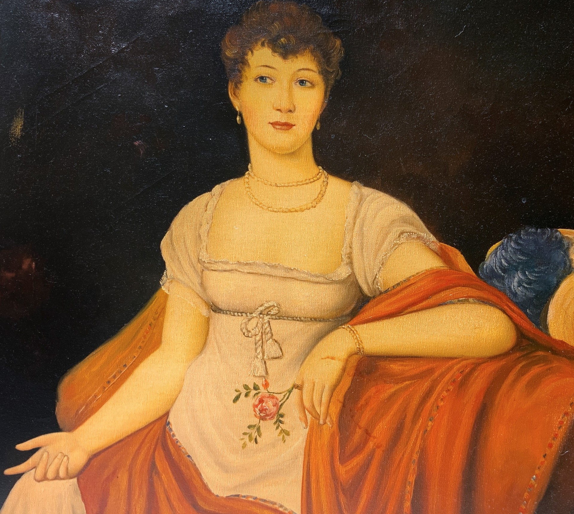 Dama in abiti neoclassici, XX secolo 60x50 cm, in cornice 80x70 cm Dipinto ad olio su tela