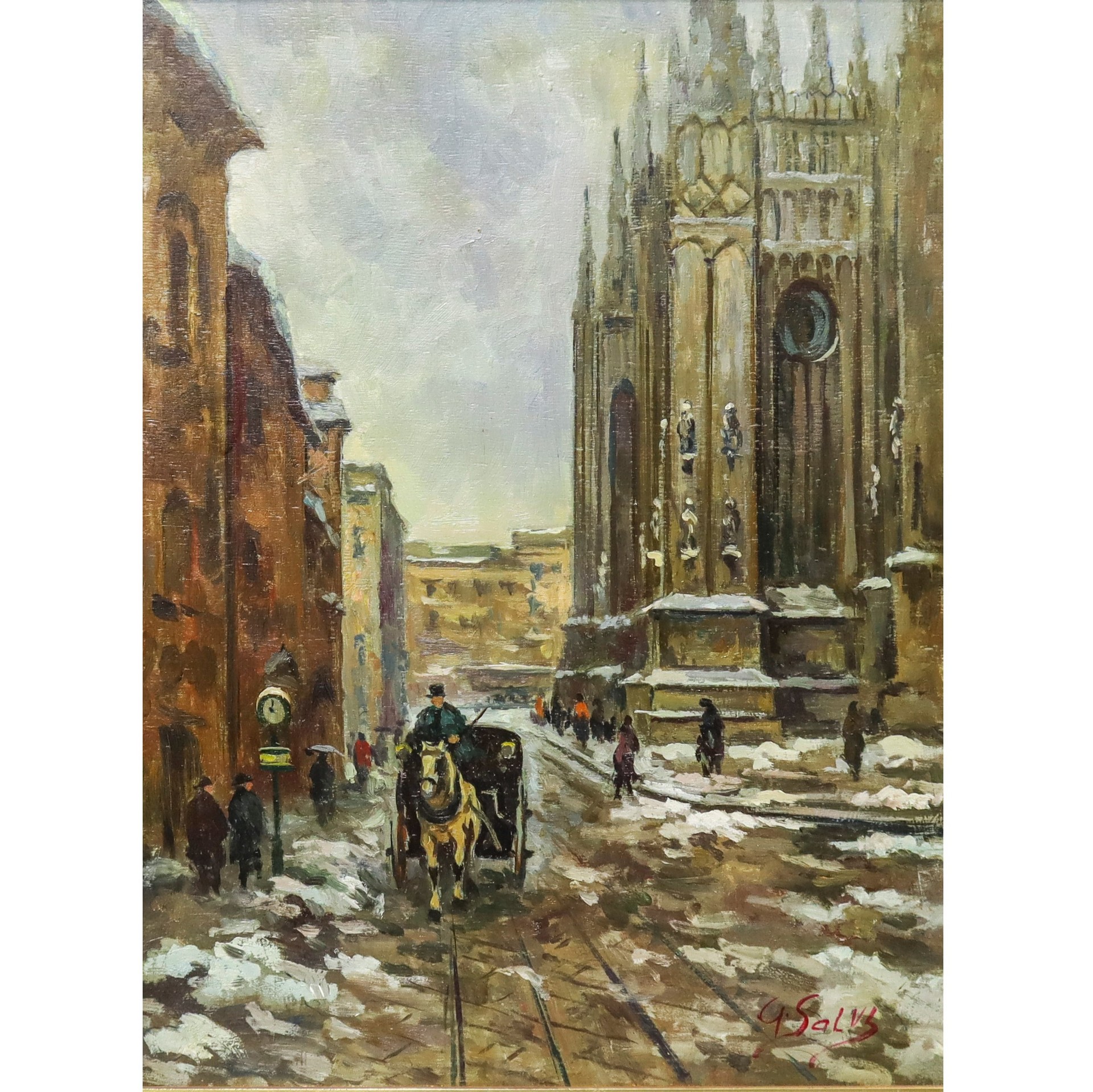 Lotto 233 | Giuseppe Salvi (XX Sec.) - Carrozza con passanti al Duomo di Milano