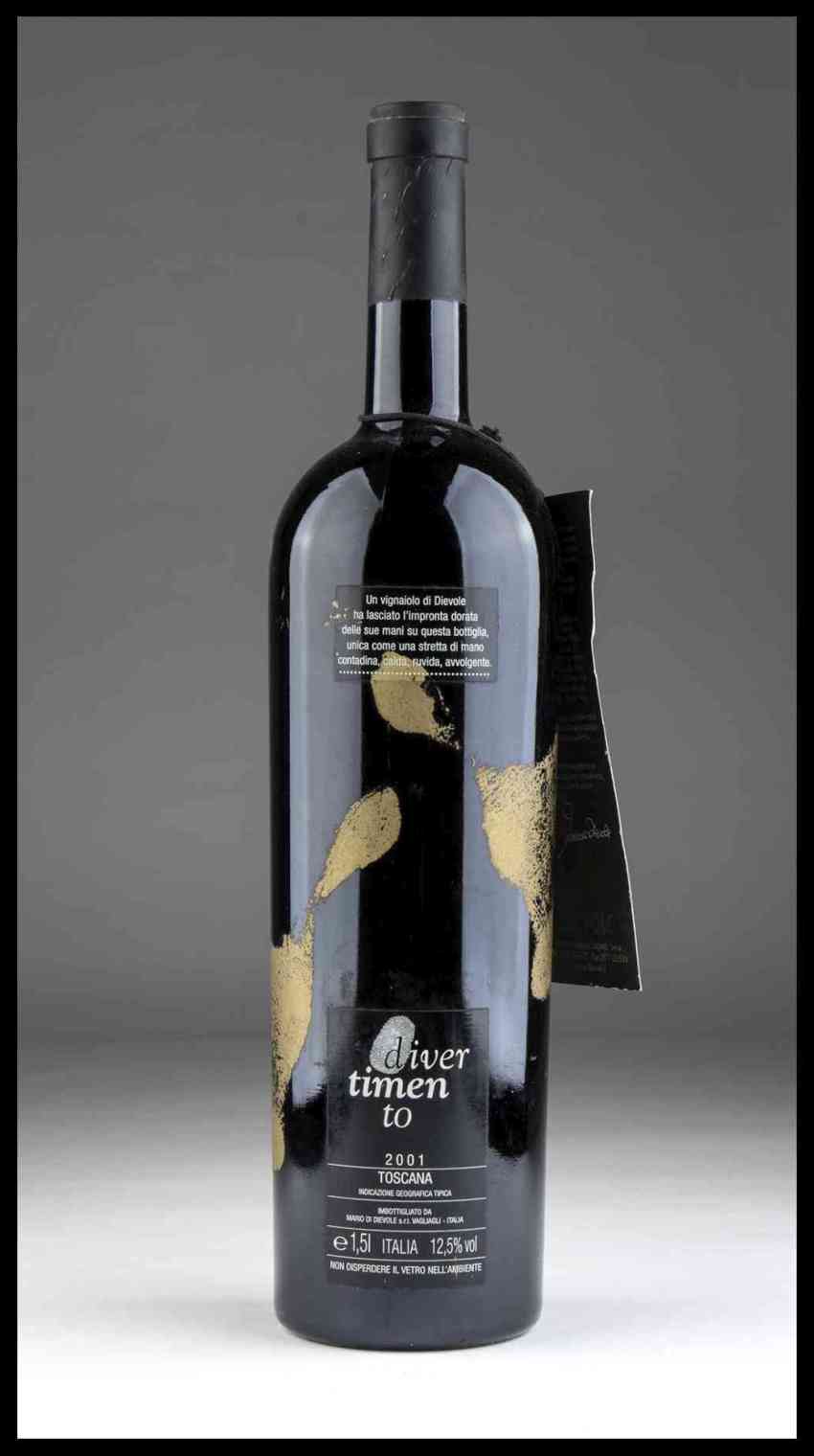 Dievole Divertimento Toscana, Divertimento (IGT) - 1 magnum (Mg), annata 2001.Livello: entro il collo (WN), livello di colmatura standard.Condition report: etichetta e capsula in perfette condizioni.