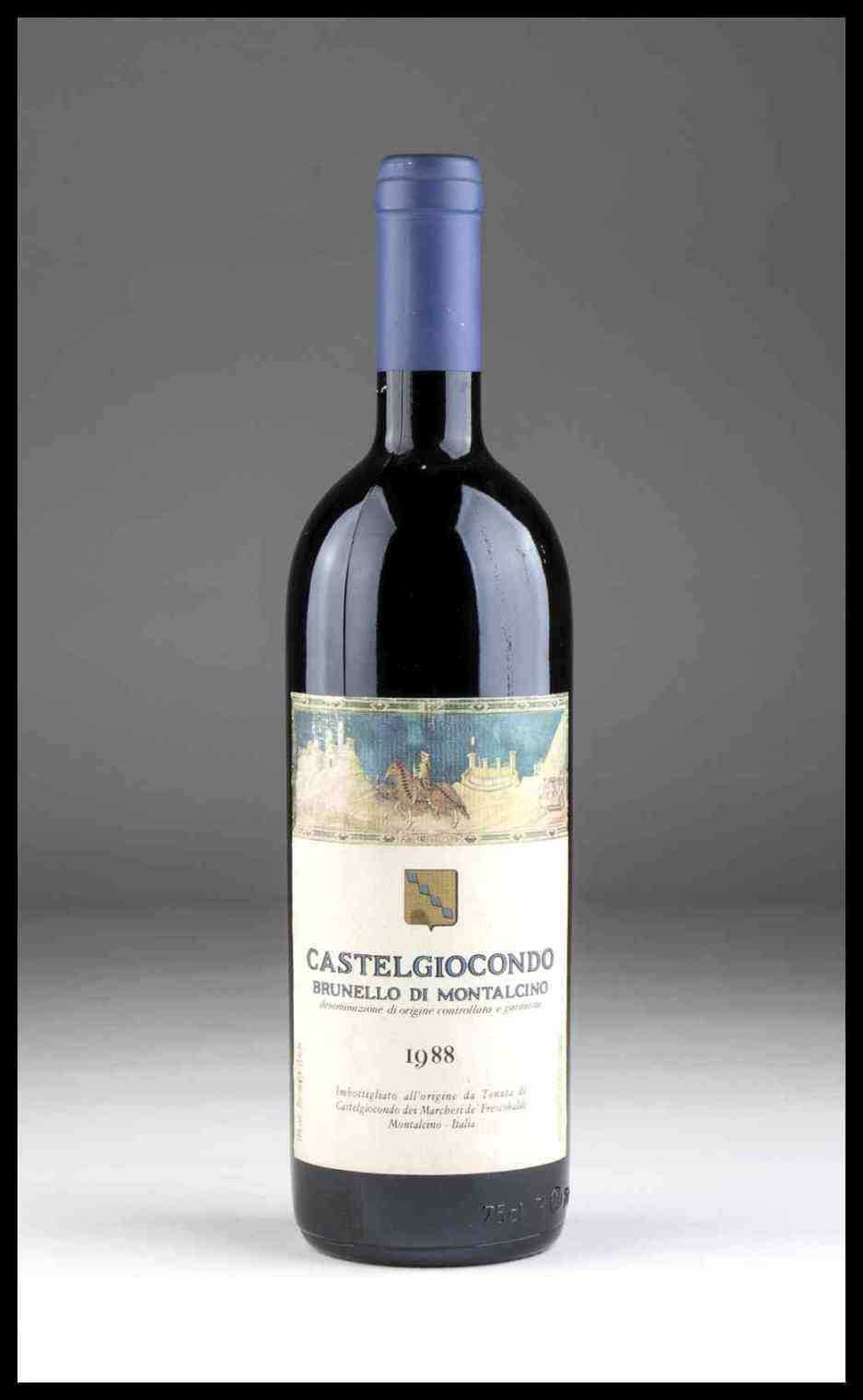Tenuta Castelgiocondo, Brunello di Montalcino Toscana, Brunello di Montalcino DOCG - 1 bottiglia (bt), annata 1988.Livello: spalla bassa (LS), qualità variabile, con prezzi meno elevati. Non insolito per bottiglie di 25 o piu' anni.Condition report: etichetta e capsula in buone condizioni.Note: Annata rara.