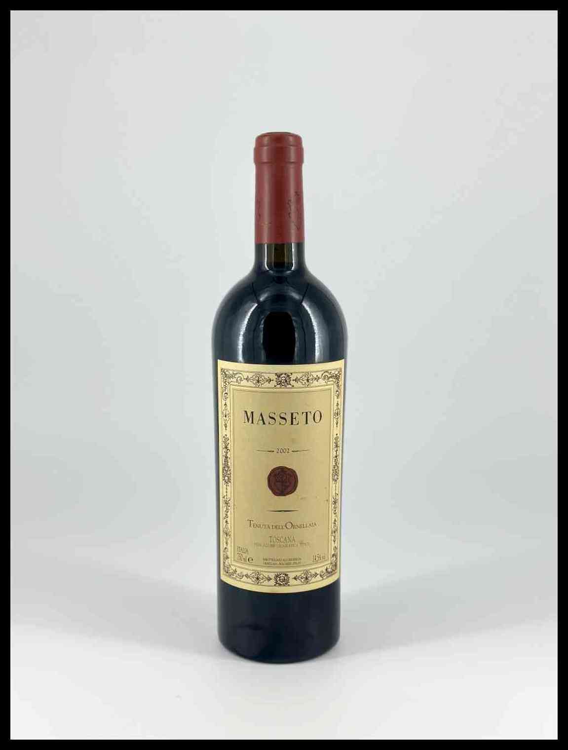 Tenuta dell'Ornellaia, Masseto Toscana, Masseto IGT - 1 bottiglia (bt), annata 2002.Livello: collo inferiore (BN), nella norma per i vini di qualsiasi età.Condition report: etichetta leggermente macchiata e capsula in perfette condizioni.