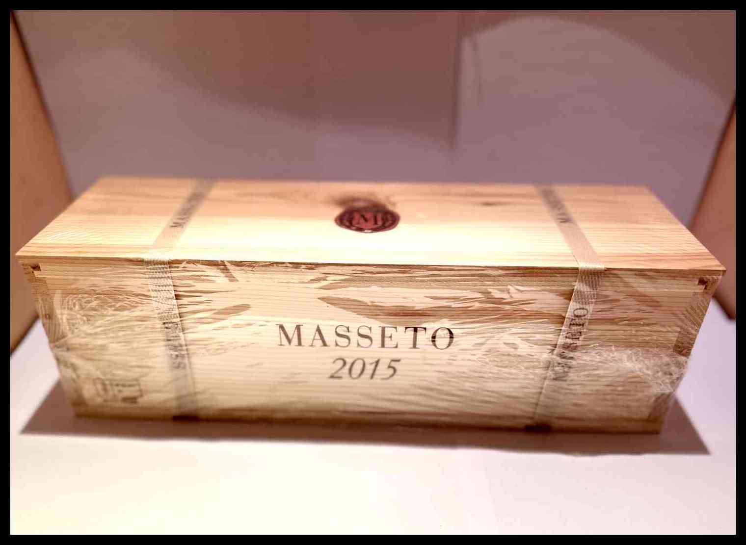 Tenuta Masseto, Masseto Toscana, Masseto IGT - 1 bottiglia (bt), annata 2015.Confezione: scatola di legno originale (OWC).Livello: entro il collo (WN), livello di colmatura standard.Condition report: etichetta e capsula in perfette condizioni.Note: scatola legno ancora chiusa con plastica e fascette originali.