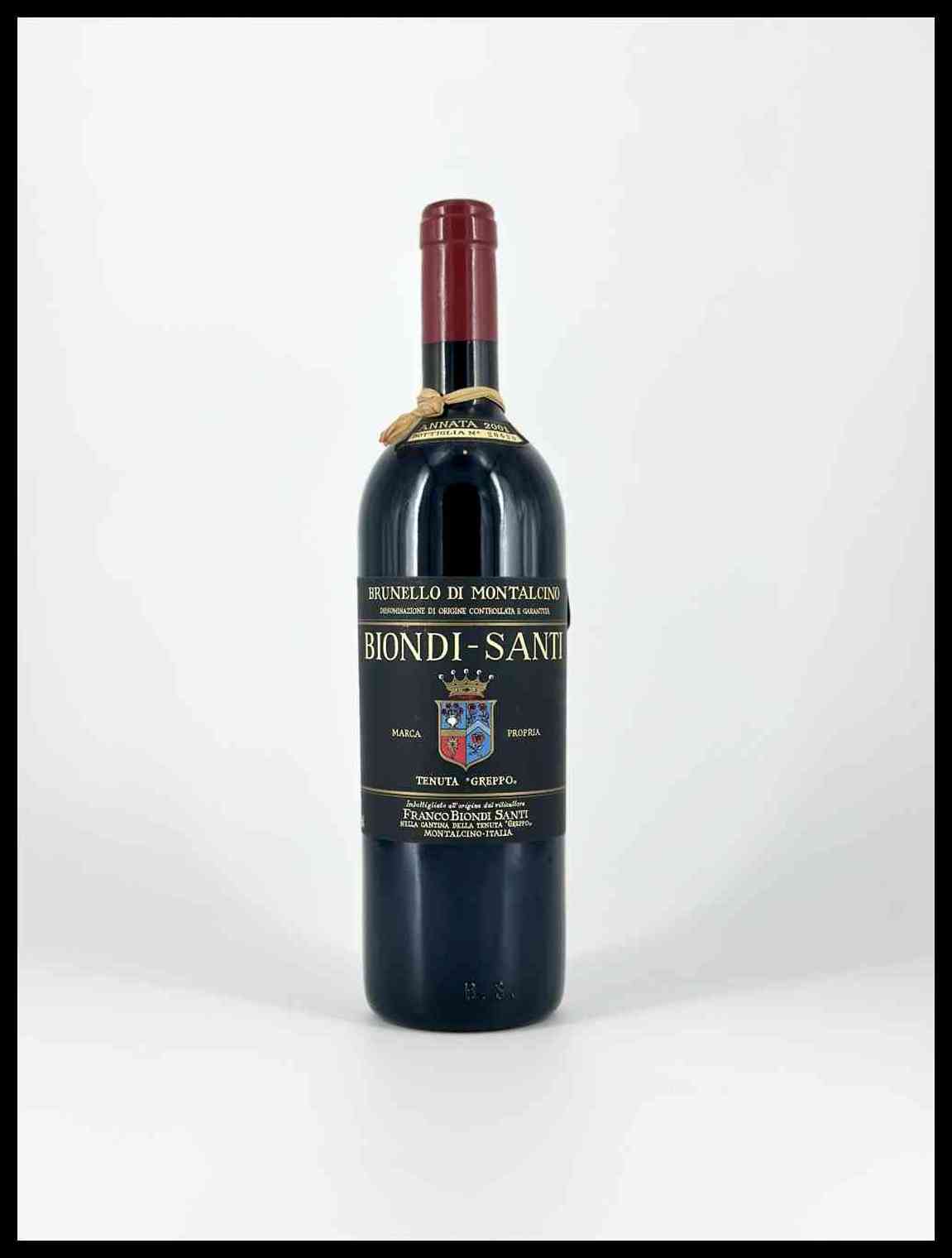 Tenuta il Greppo Biondi Santi, Brunello di Montalcino Toscana, Brunello di Montalcino DOCG - 1 bottiglia (bt), annata 2001.Livello: entro il collo (WN), livello di colmatura standard.Condition report: etichetta e capsula in perfette condizioni.Cartellino di garanzia.