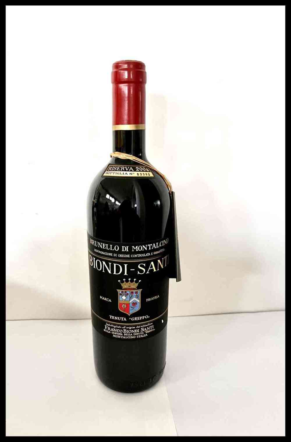 Tenuta il Greppo Biondi Santi, Brunello di Montalcino Toscana, Brunello di Montalcino DOCG - 1 bottiglia (bt), annata 2004.Livello: entro il collo (WN), livello di colmatura standard.Condition report: etichetta e capsula in perfette condizioni.