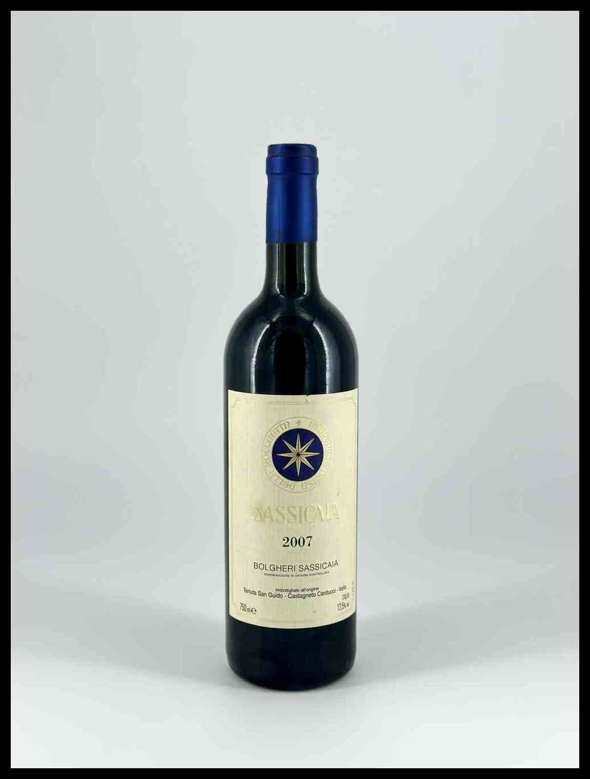 Tenuta San Guido Bolgheri, Sassicaia Toscana, Sassicaia DOC - 1 bottiglia (bt), annata 2007.Livello: collo inferiore (BN), nella norma per i vini di qualsiasi età.Condition report: etichetta macchiata e capsula in perfette condizioni.