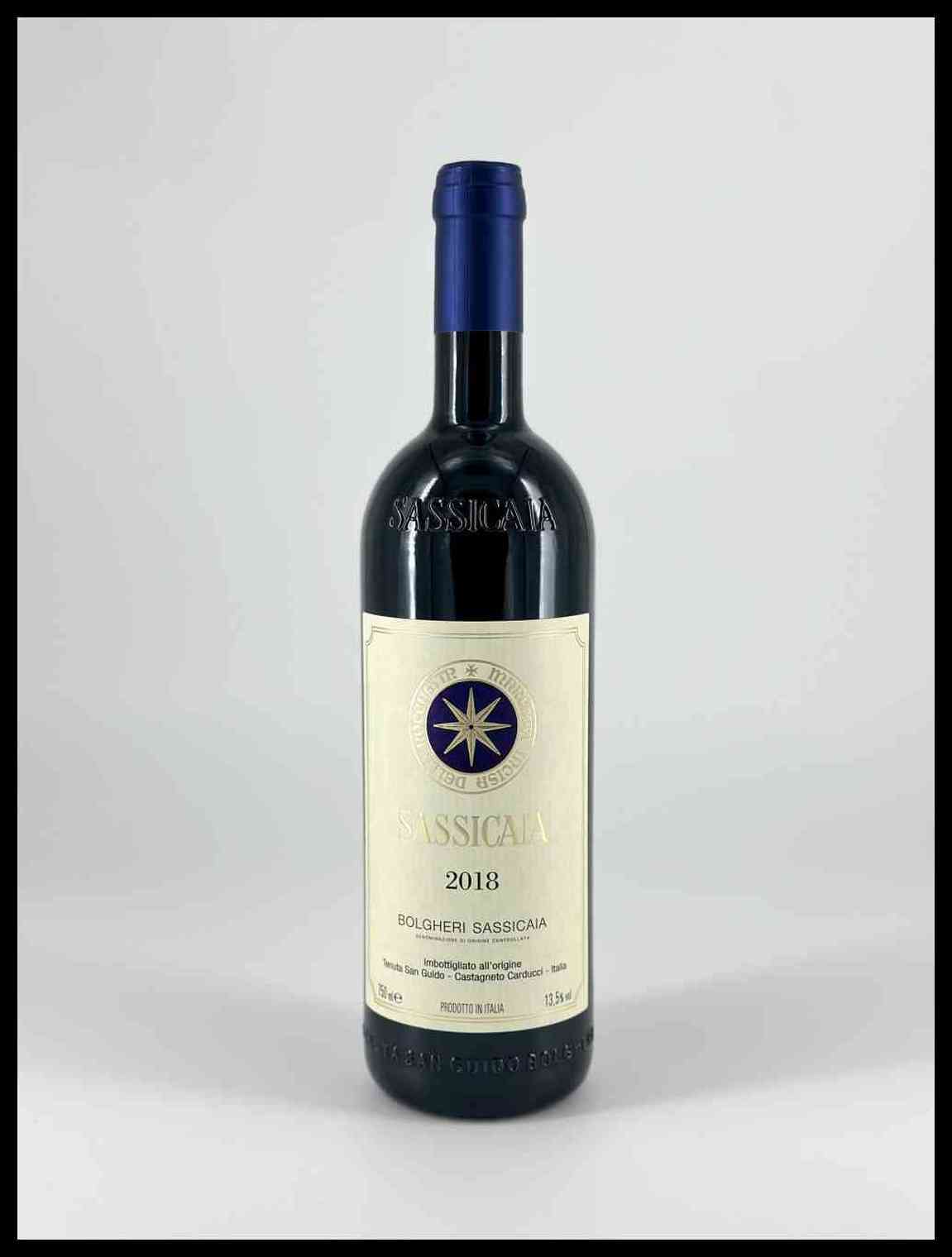 Tenuta San Guido Bolgheri, Sassicaia Toscana, Sassicaia DOC - 1 bottiglia (bt), annata 2018.Livello: entro il collo (WN), livello di colmatura standard.Condition report: etichetta e capsula in perfette condizioni.