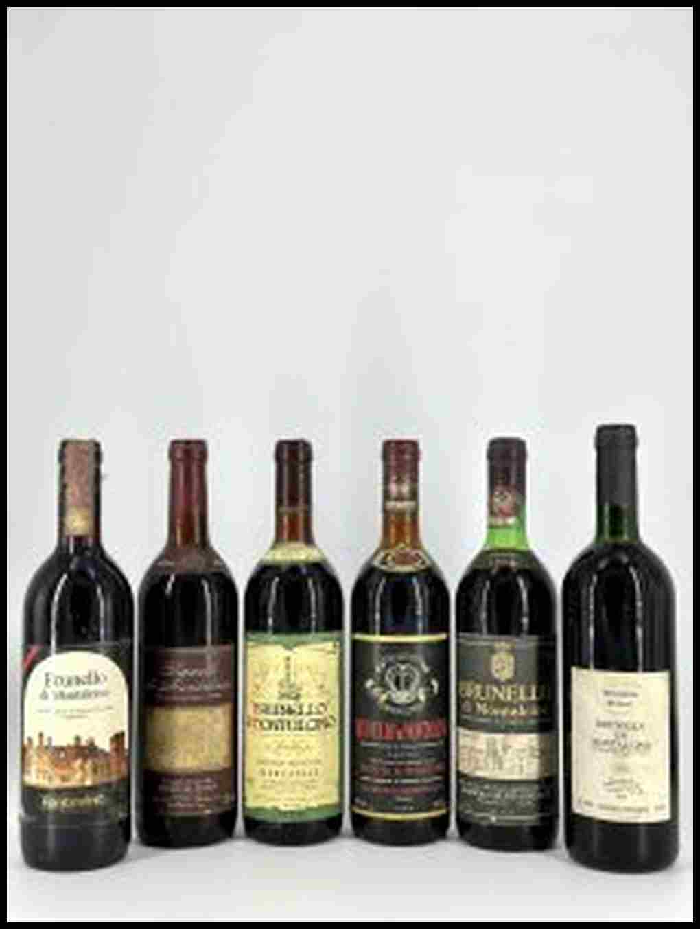 Lotto Multiplo Brunello di Montalcino Toscana, Brunello di Montalcino DOCG - 6 bottiglie (bt), annate 70'90'.Livello: sommità della spalla (TS), livello normale per i vini di oltre 15 anni.Condition report: etichette e capsule con segni d'usura del tempo.