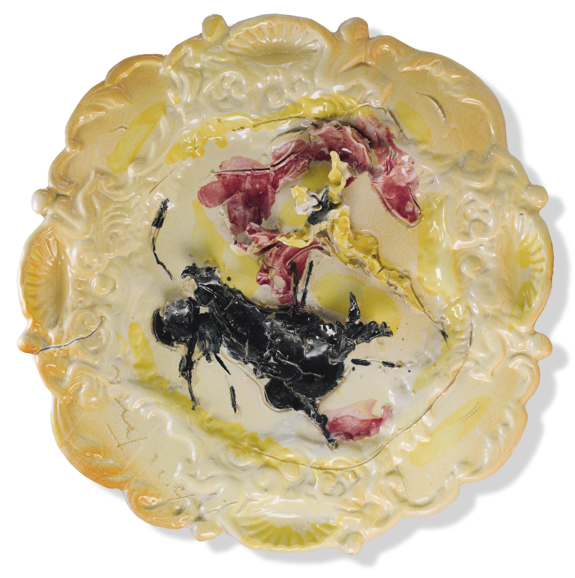 LUCIO FONTANA 1899 - 1968 TAUROMACHIA signed, glazed ceramic firmato piatto...