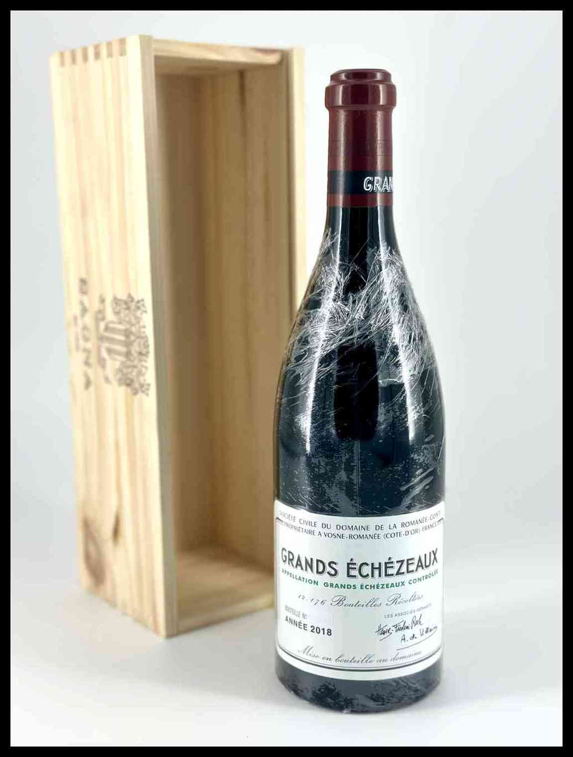 Domaine de la Romanée-Conti Grands-Échézeaux Grand Cru Francia, Côte de Nuits, Grands Échézeaux Grand Cru, Appellation d'Origine Contrôlée (AOC) - 1 bottiglia (bt), annata 2018.Livello: entro il collo (WN), livello di colmatura standard.Confezione: scatola di legno originale (OWC).Condition report: etichetta e capsula in perfette condizioni.Note: I vigneti Echezeaux dividono il Clos de Vougeot dai vitigni Premier Cru di Vosne-Romanée. Di un rosso granato e aggraziato, Grands Echezeaux al naso è carnoso, con una consistenza solida piena di note di ciliegia, prugna e spezie. Al palato ha intensità e lunghezza che non tradiscono l'importante denominazione.Punteggio Robert Parker 96/100