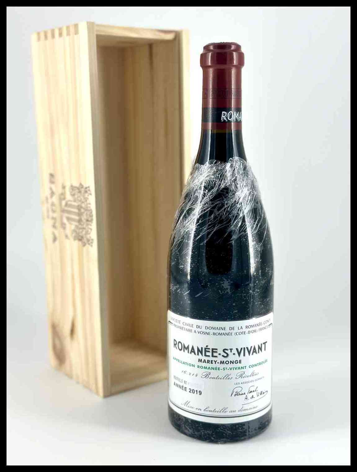 Domaine de La Romanée-ContiRomanée-Saint-Vivant Grand Cru (Marey-Monge) Francia, Côte de Nuits, Romanée-Saint-Vivant Grand Cru, Appellation d'Origine Contrôlée (AOC) - 1 bottiglia (bt), annata 2019.Livello: entro il collo (WN), livello di colmatura standard.Confezione: scatola di legno originale (OWC).Condition report: etichetta e capsula in perfette condizioni.