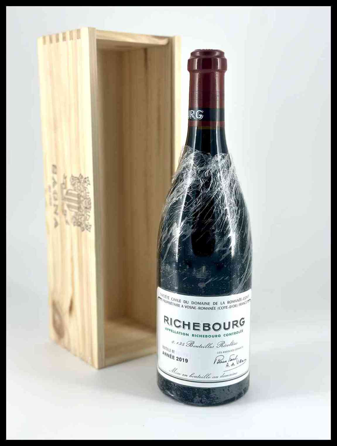 Domaine de la Romanée-Conti, Richebourg Grand Cru Francia, Côte de Nuits, Grand Cru, Appellation d'Origine Contrôlée (AOC) - 1 bottiglia (bt), annata 2019.Livello: entro il collo (WN), livello di colmatura standard.Confezione: scatola di legno originale (OWC).Condition report: etichetta e capsula in perfette condizioni.