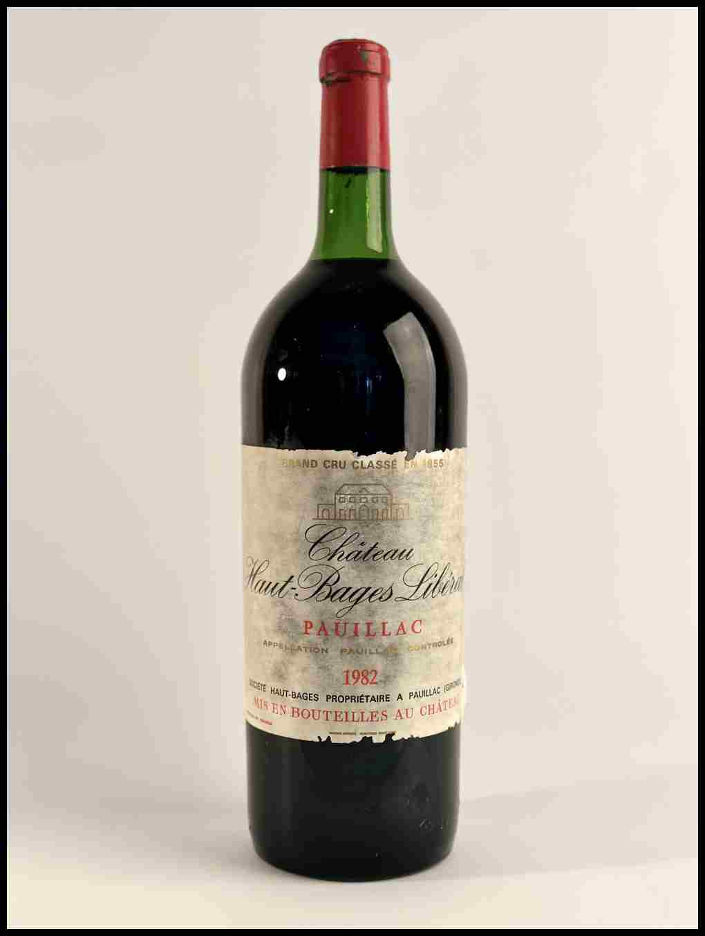 Château Haut Bages Libéral, Pauillac Pauillac, Grand Cru Classé, Appellation d'Origine Contrôlée (AOC) - 1 bottiglia (bt), annata 1982.Livello: sommità della spalla (TS),livello normale per i vini di oltre 15 anni d’età.Condition report: etichetta danneggiata e capsula con segni d'usura del tempo.