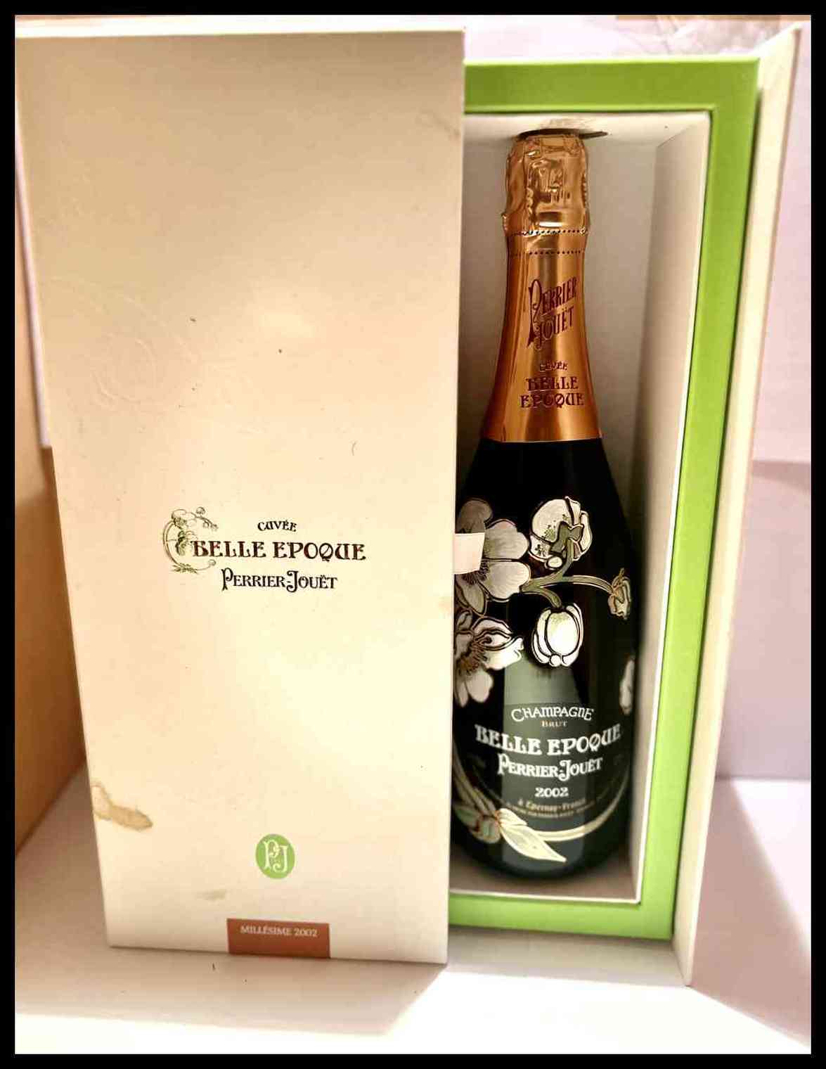 Perrier-Jouët, Champagne Belle Époque Blanc de Blanc 2002 Francia, Champagne Brut - 1 bottiglia (bt), annata 2002.Livello: entro il collo (WN), livello di colmatura standard.Confezione: scatola di cartone originale (OC).Condition report: etichetta e capsula in perfette condizioni.