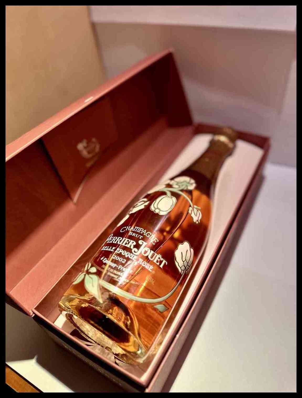 Perrier Jouët, Champagne Belle Epoque Rosé 2002 Francia, Champagne - 1 bottiglia (bt), annata 2002.Livello: entro il collo (WN), livello di colmatura standard.Confezione: scatola di cartone originale, cofanetto (OC).Condition report: etichetta e capsula in perfette condizioni.