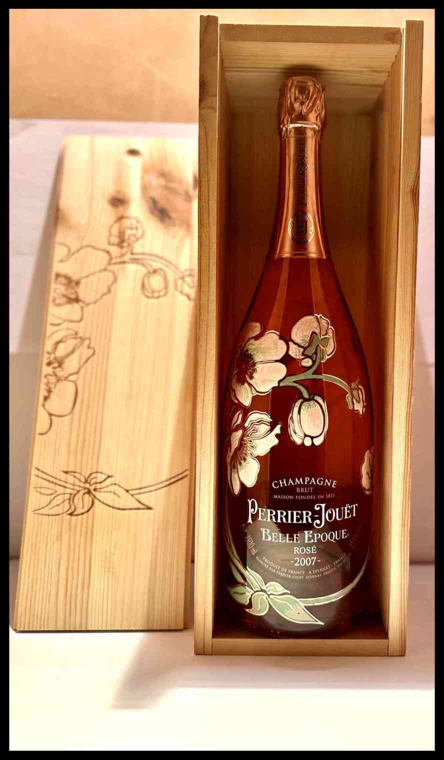 Perrier Jouët, Champagne Belle Epoque Rosé 2007 Francia, Champagne - 1 magnum (Mg), annata 2007.Livello: entro il collo (WN), livello di colmatura standard.Confezione: scatola di legno originale (OWC).Condition report: etichetta e capsula in perfette condizioni.