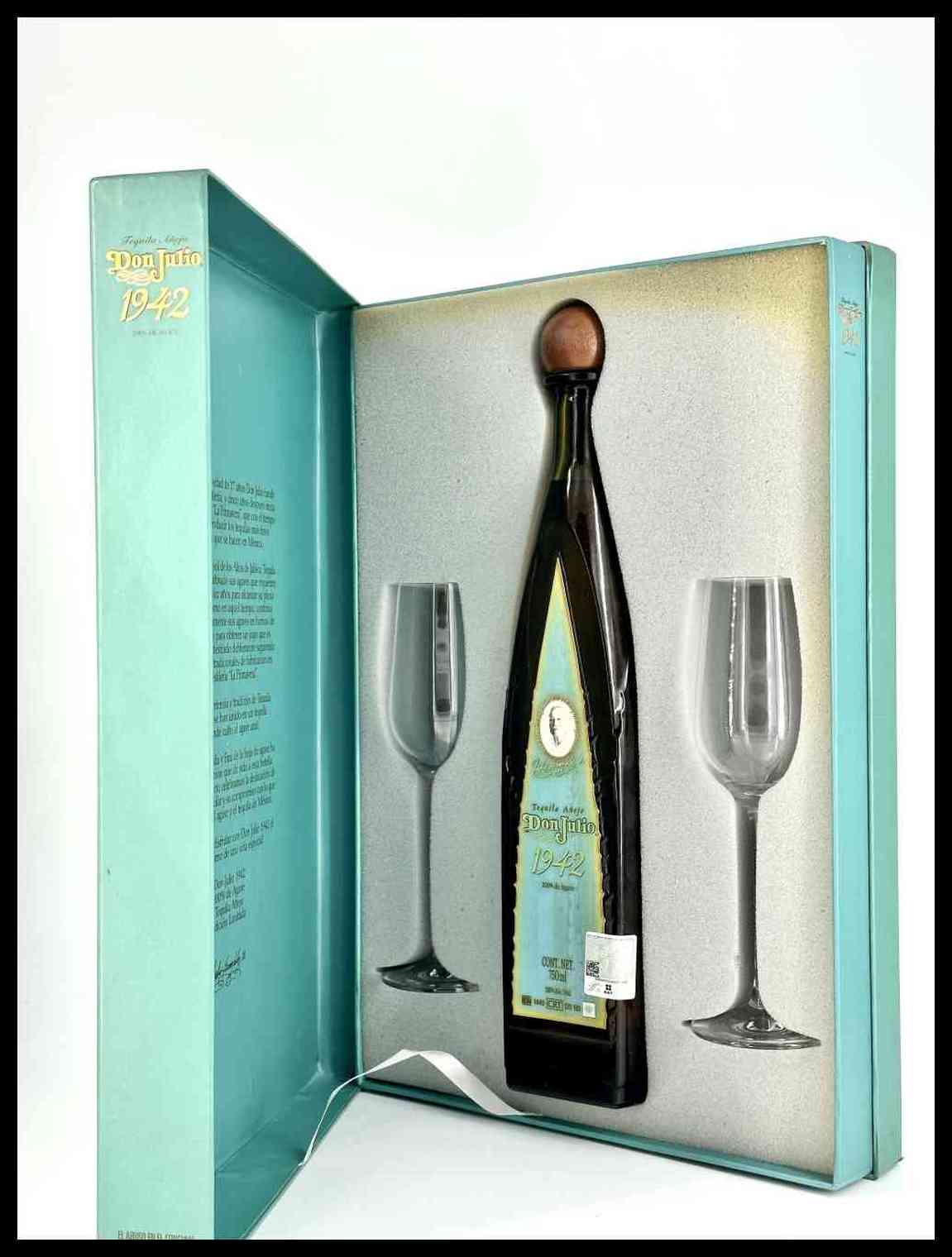 Don Julio, 1942 Reserva de Don Julio Tequila Añejo Mexico, Tequila Añejo 75 cl. 38% vol.Livello: collo inferiore (BN).Confezione: confezione regalo originale con 2 calici (OC).Condition report: etichetta e capsula in perfette condizioni.